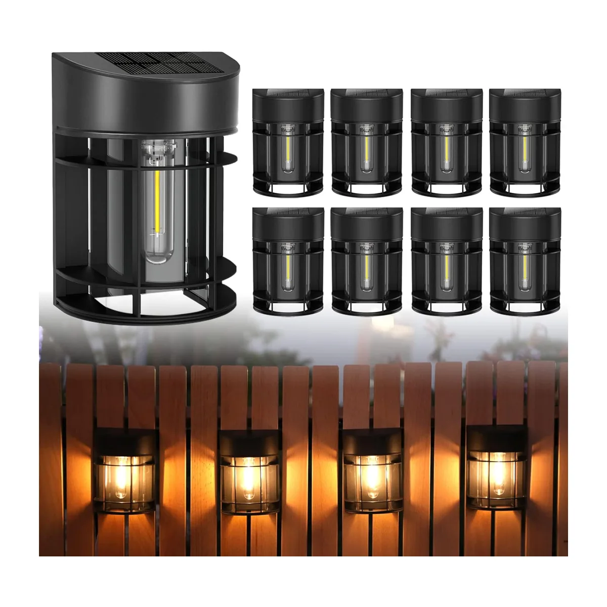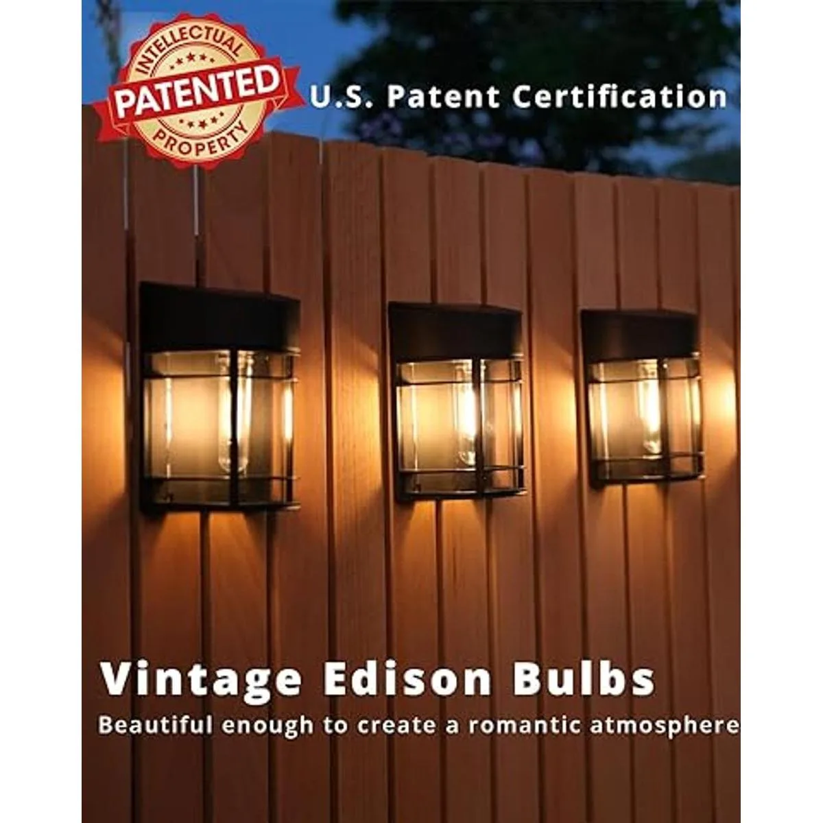Luces solares para cercas al aire libre, paquete de 8 luces de cubierta alimentadas por energía solar con bombillas LED Edison, luces solares impermeables para exteriores, para jardín, valla, patio, decoración