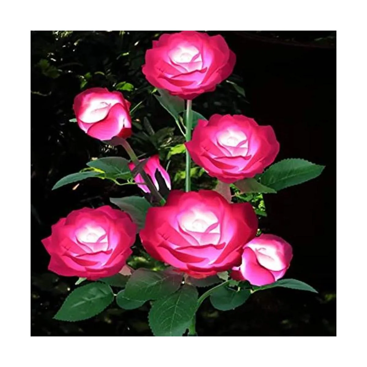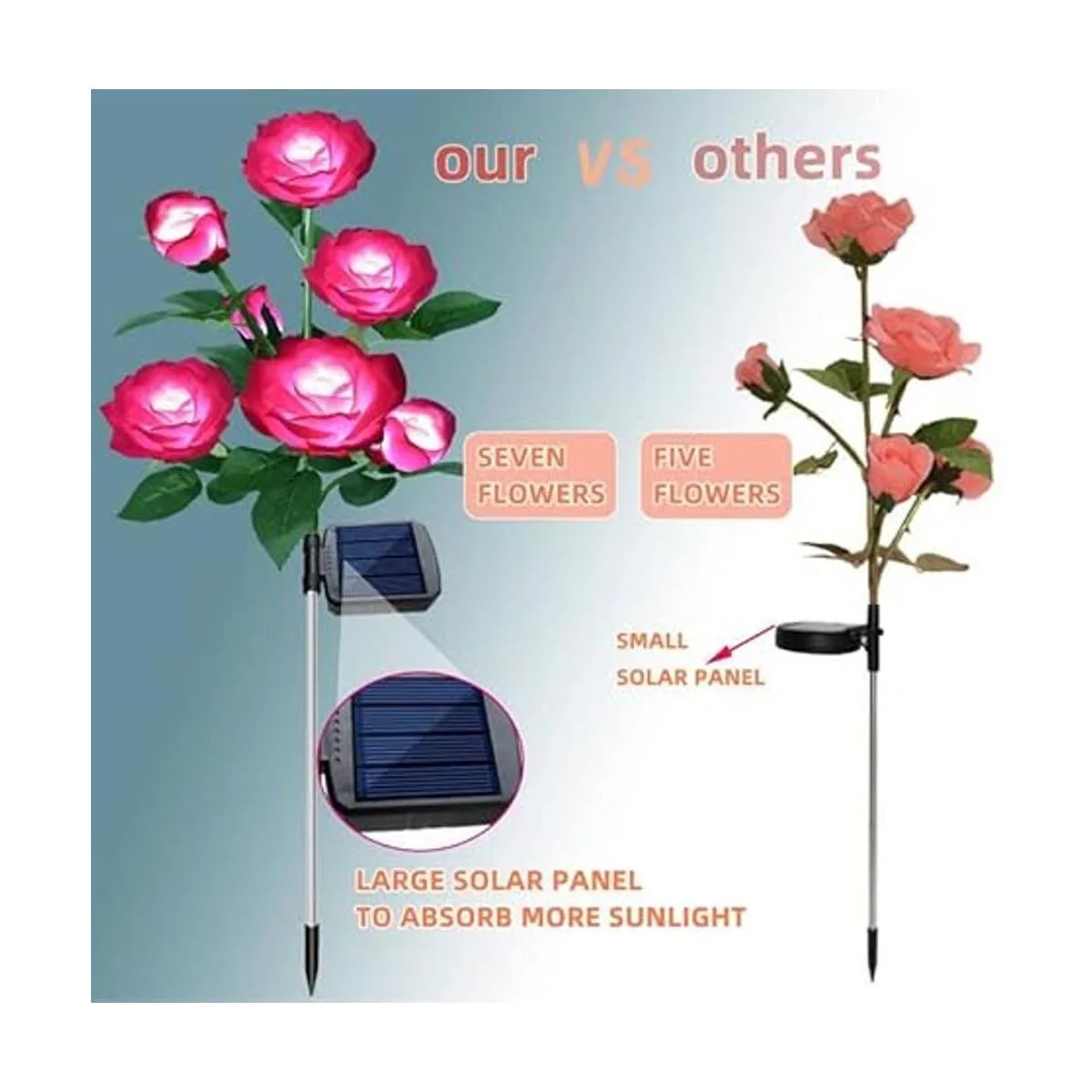 Luces solares para exteriores, 7 rosas, luces solares de jardín, luces de estaca de jardín, camino, luces de rosas decorativas para patio, patio, camino, paisaje, panel solar ampliado rosa