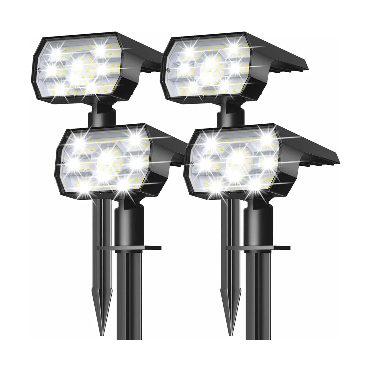 Paquete de 4 luces solares para paisaje: equipadas con 56 LED increíbles líder en el mercado. Los focos solares para exteriores crearán el acento de iluminación perfecto dondequiera que se coloque. Haz que tu patio sea tan brillante como el día sin incurrir en una gran factura. El tiempo de trabajo es de 6 a 20 horas, en comparación con otras luces solares en el mercado, nuestro tiempo de trabajo es más largo, el brillo es más fuerte y es más duradero.