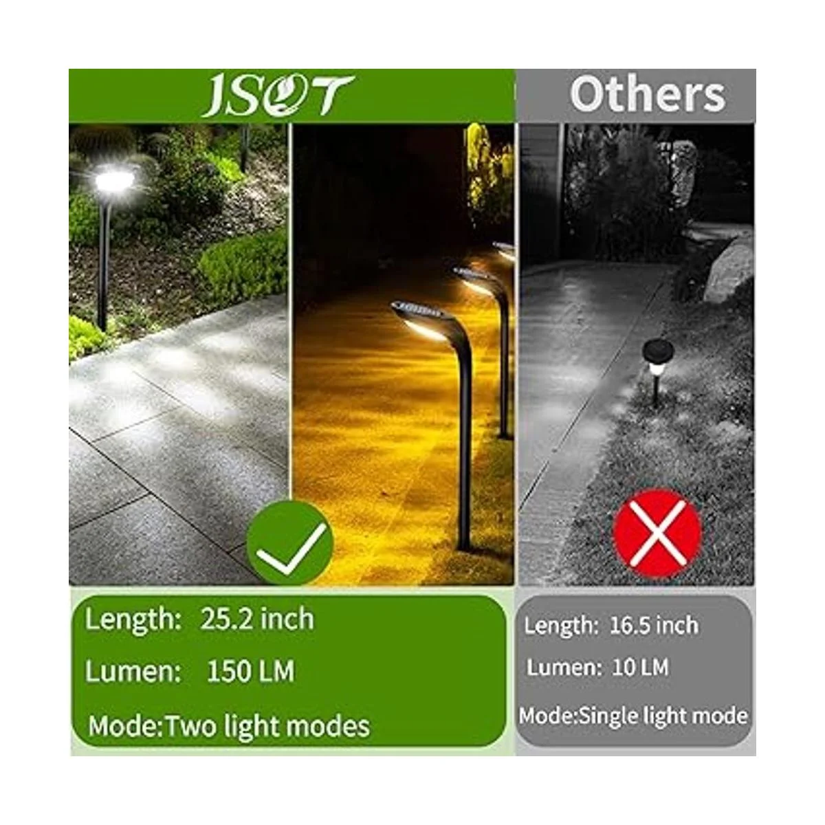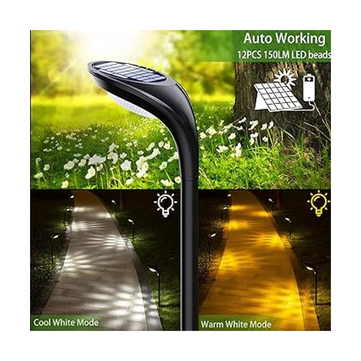 2 modos de iluminación y 2 formas de instalación: luces solares de alta potencia con 2 modos de color de iluminación blanco frío y blanco cálido. Enciende la luz y está predeterminada al modo 1 blanco frío, pulsa el botón de nuevo para el modo 2 blanco cálido. La iluminación solar de paisaje viene con accesorios de instalación para insertar en el suelo o montaje en la pared. Las luces solares de camino se adaptan a tus diferentes necesidades de iluminación y decoración. Como Halloween, Decoración de Navidad, día de Acción de Gracias.