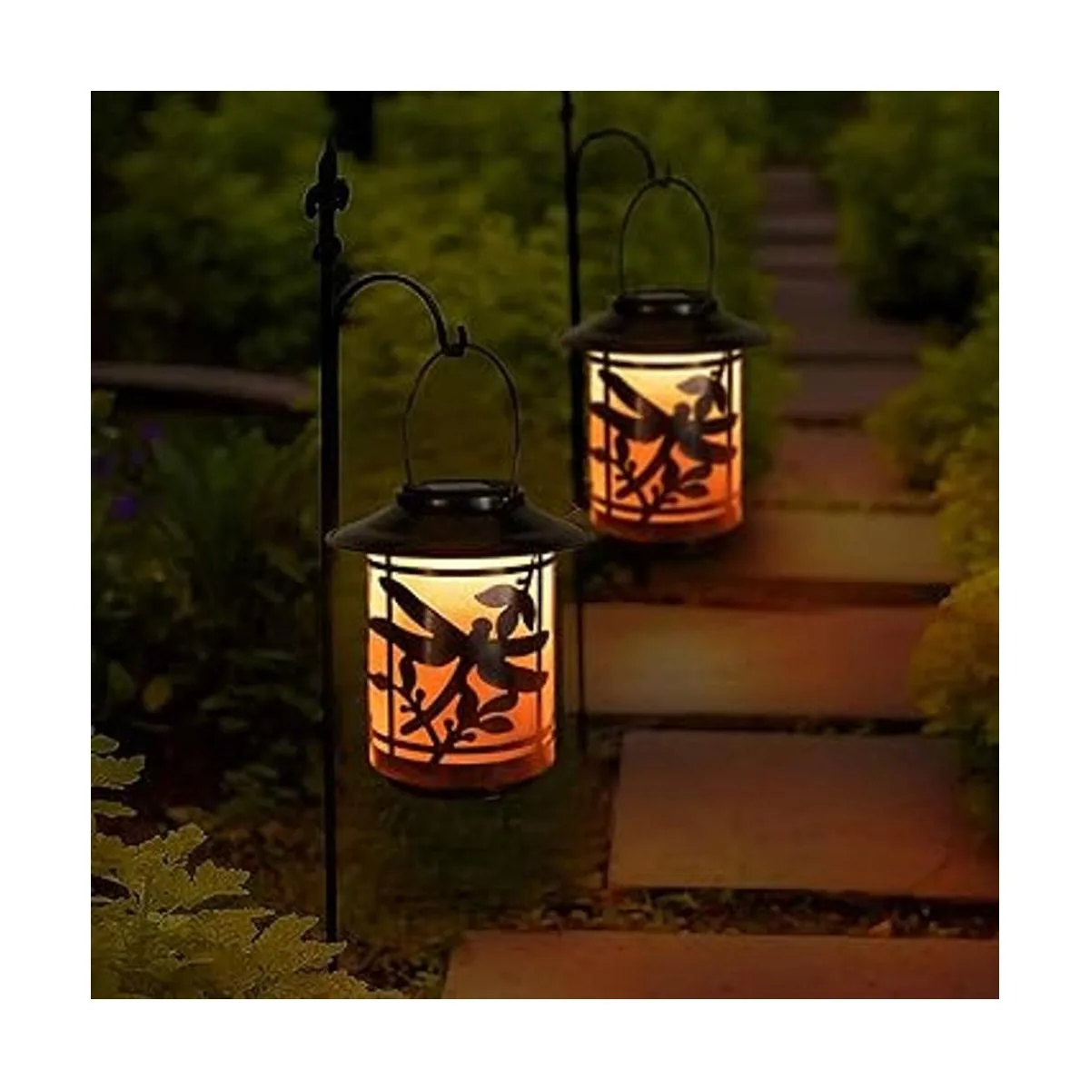 Amplio uso La linterna solar de jardín se puede colgar en cualquier lugar que desees, y se puede colocar en cualquier superficie plana, ya sea en interiores o exteriores. Adecuado para decoración de jardín al aire libre