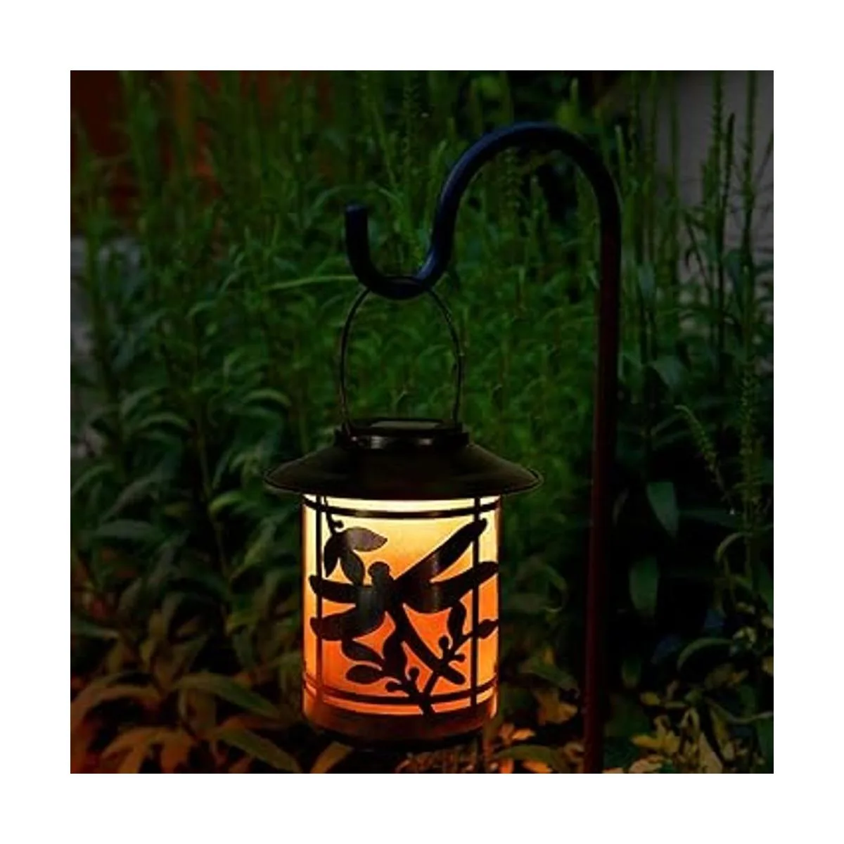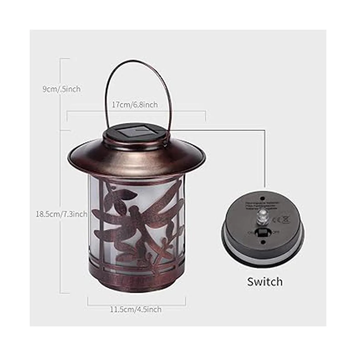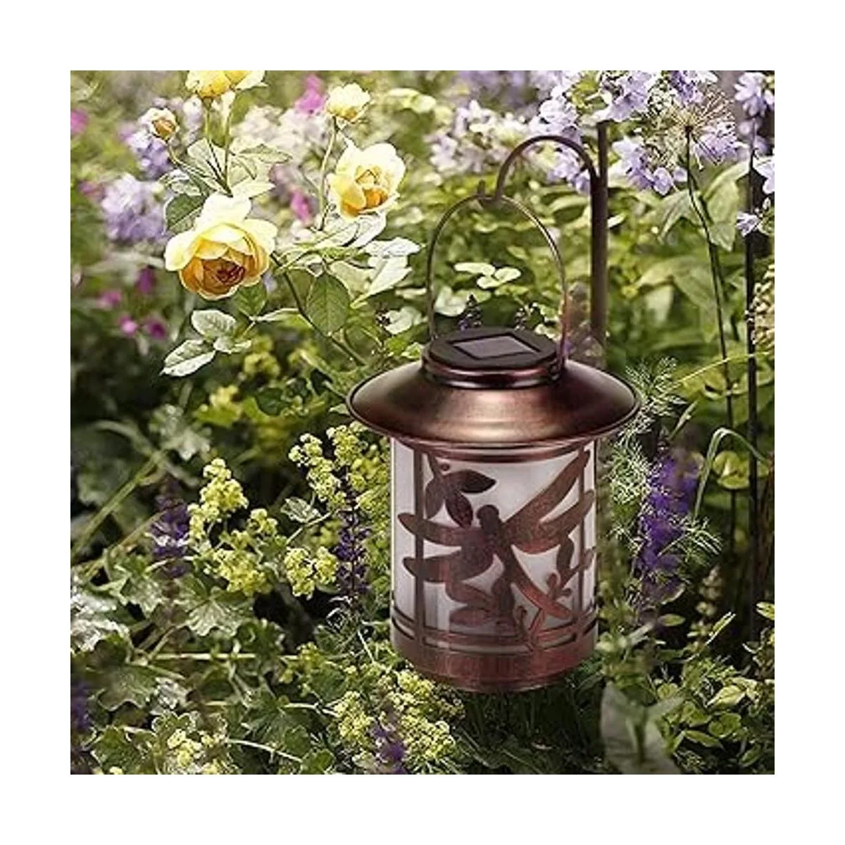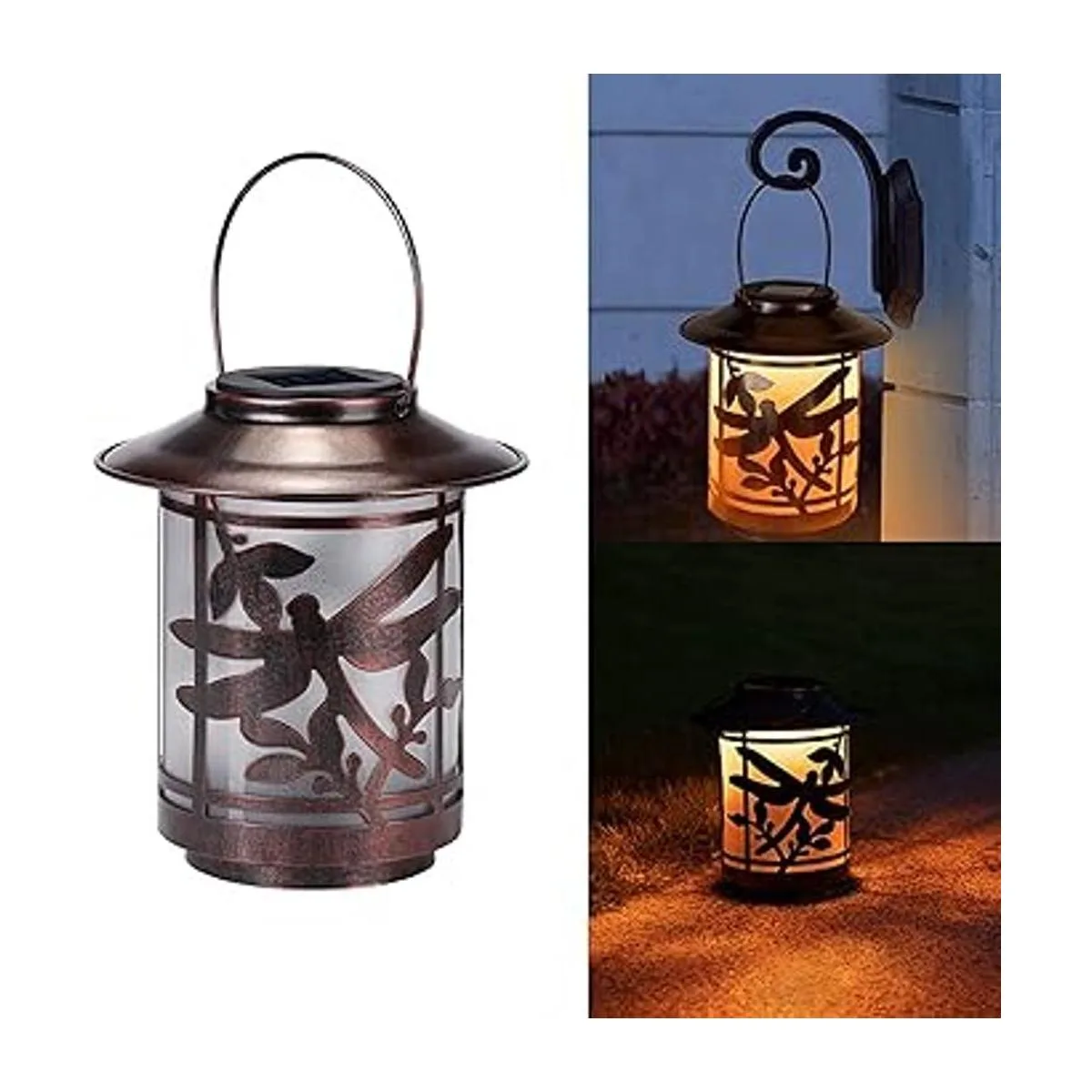 Aspecto precioso La linterna solar para exteriores cuenta con un patrón vívido de libélula, la luz cálida ilumina el exterior de la linterna, añade un ambiente misterioso para las noches de verano