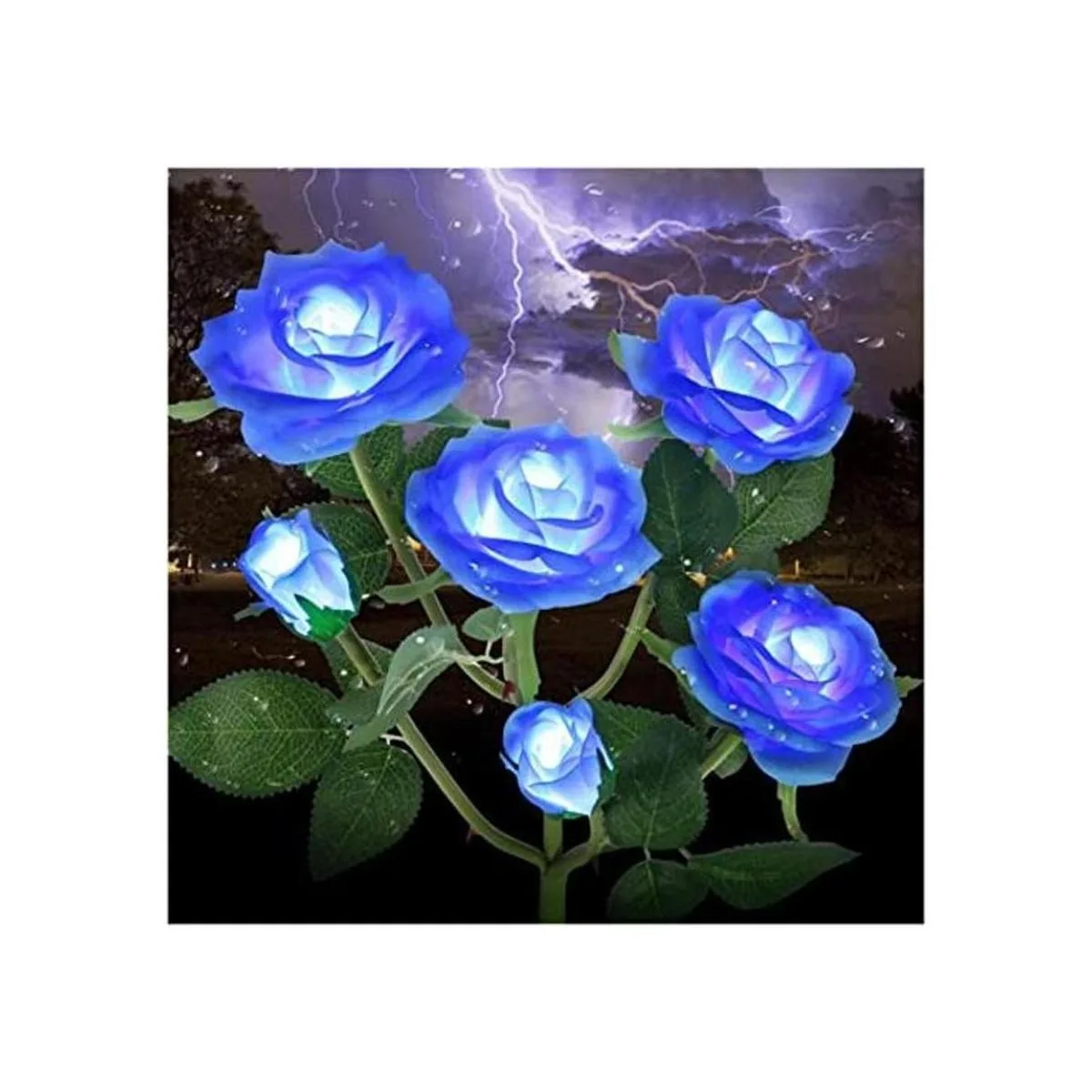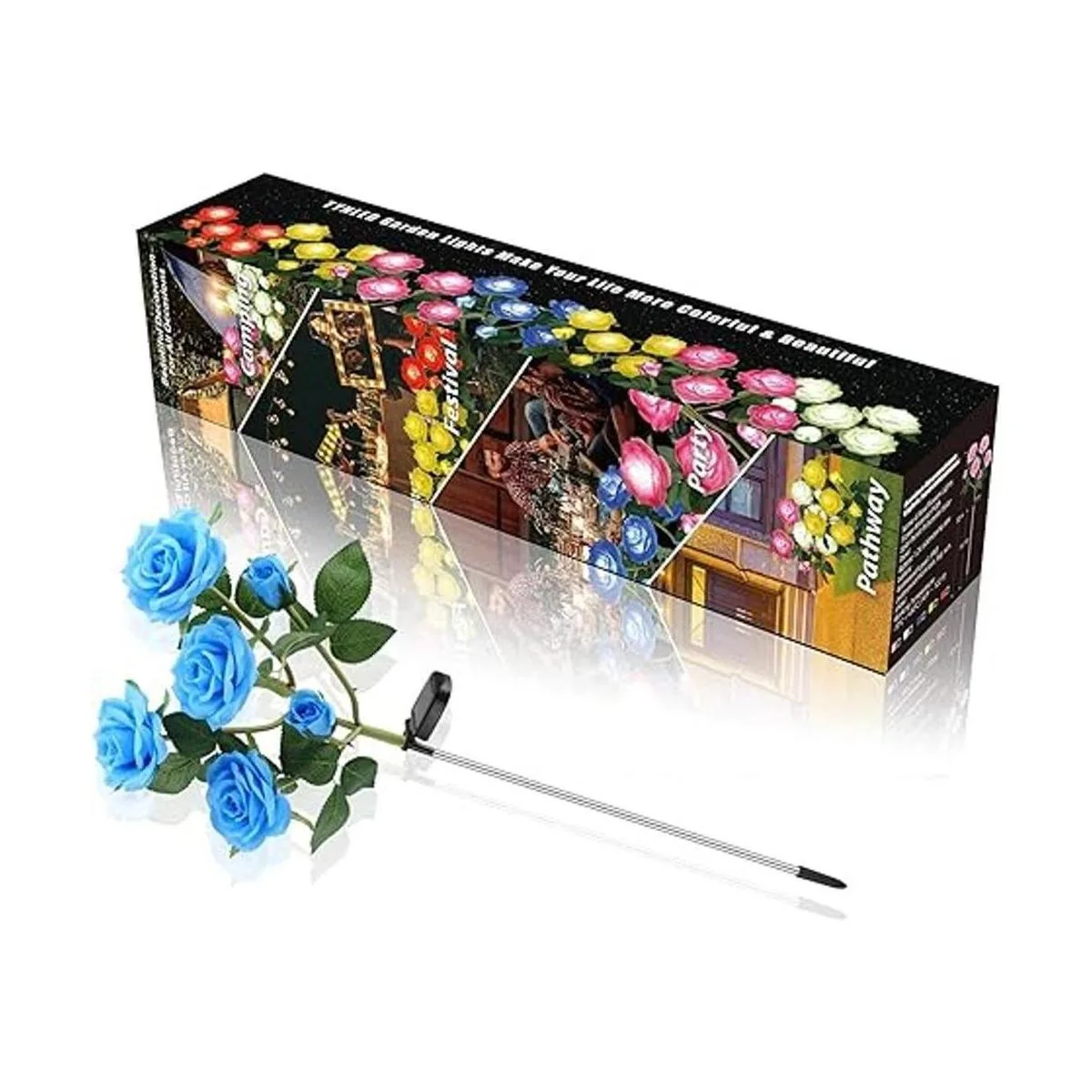Luces solares para jardín al aire libre, luz solar mejorada con 6 flores de rosa, luces decorativas solares impermeables para patio, patio, patio, patio, jardín, césped azul