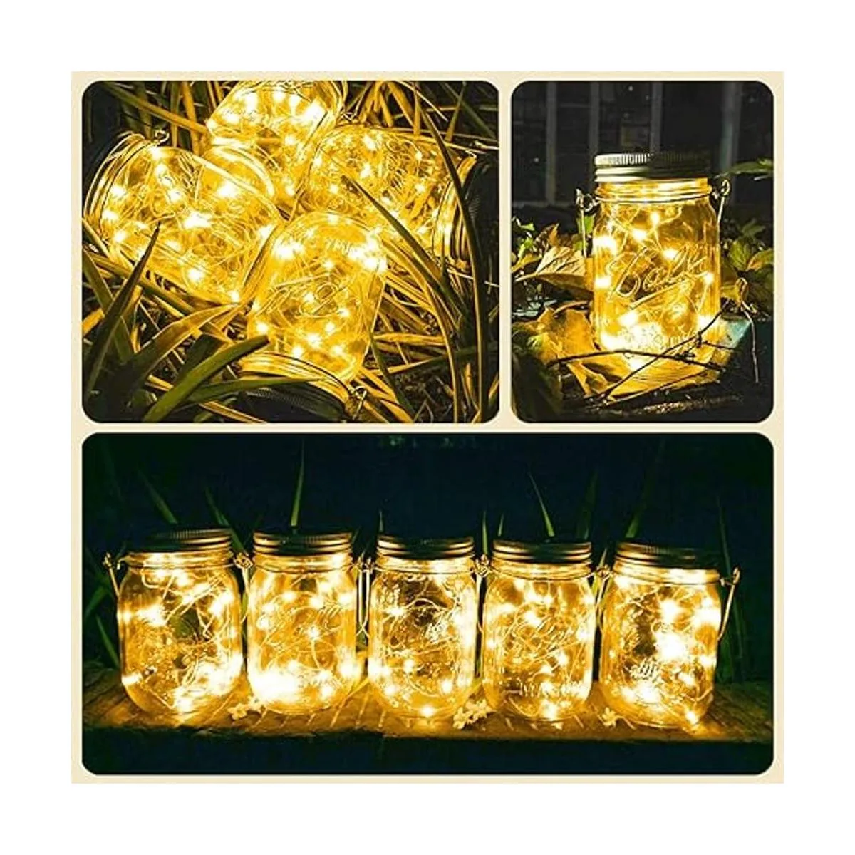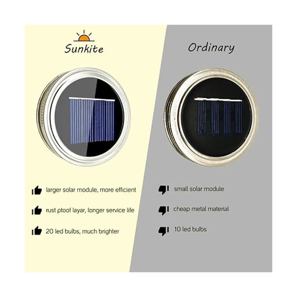 Luces de tapa de tarro Mason actualizadas: luces cálidas acogedoras, con 20 micro LED, mucho más brillantes que las 10 luces LED de tarro. Panel solar más grande, carga de manera más eficiente. El borde de la tapa utiliza material inoxidable en lugar de aleación barata, encontrarás que es más duradero en climas húmedos.