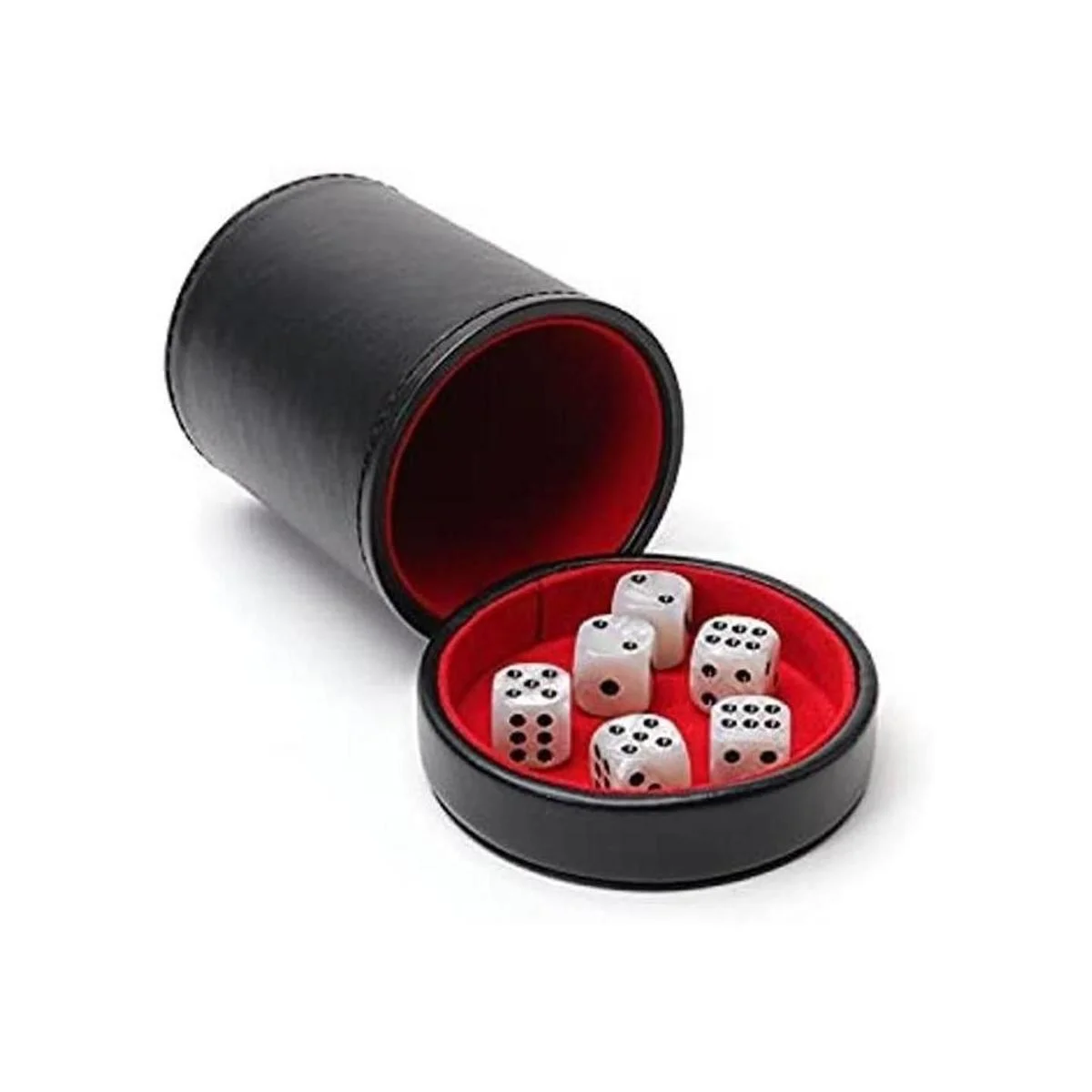 6 dados por taza: incluye un juego extra de seis perlas blancas con puntas negras, dados de 0.630 in para empezar a jugar.