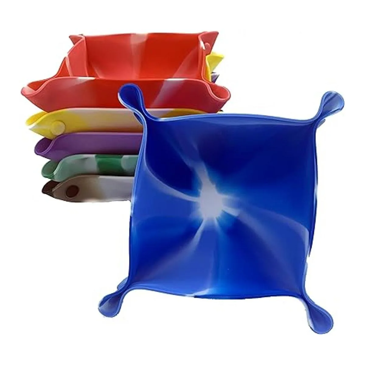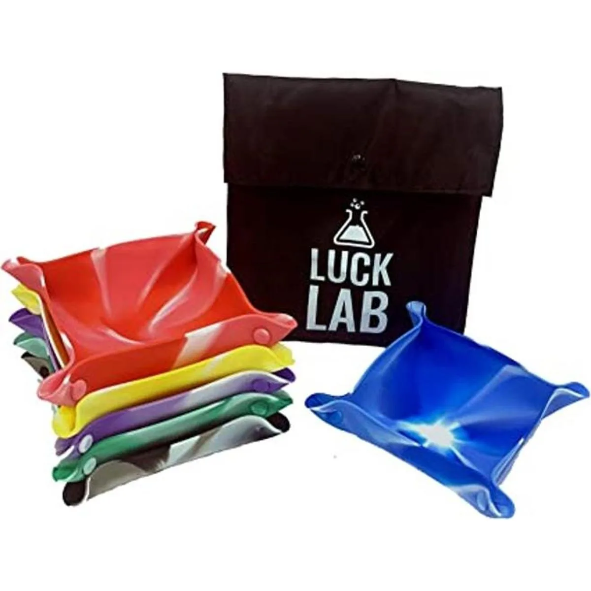 Luck Lab Juego de mesa, paquete de 6 cuencos de almacenamiento Bandeja plegable para piezas de mesa, chits, piezas, colores en remolino Bolsa de almacenamiento adicional