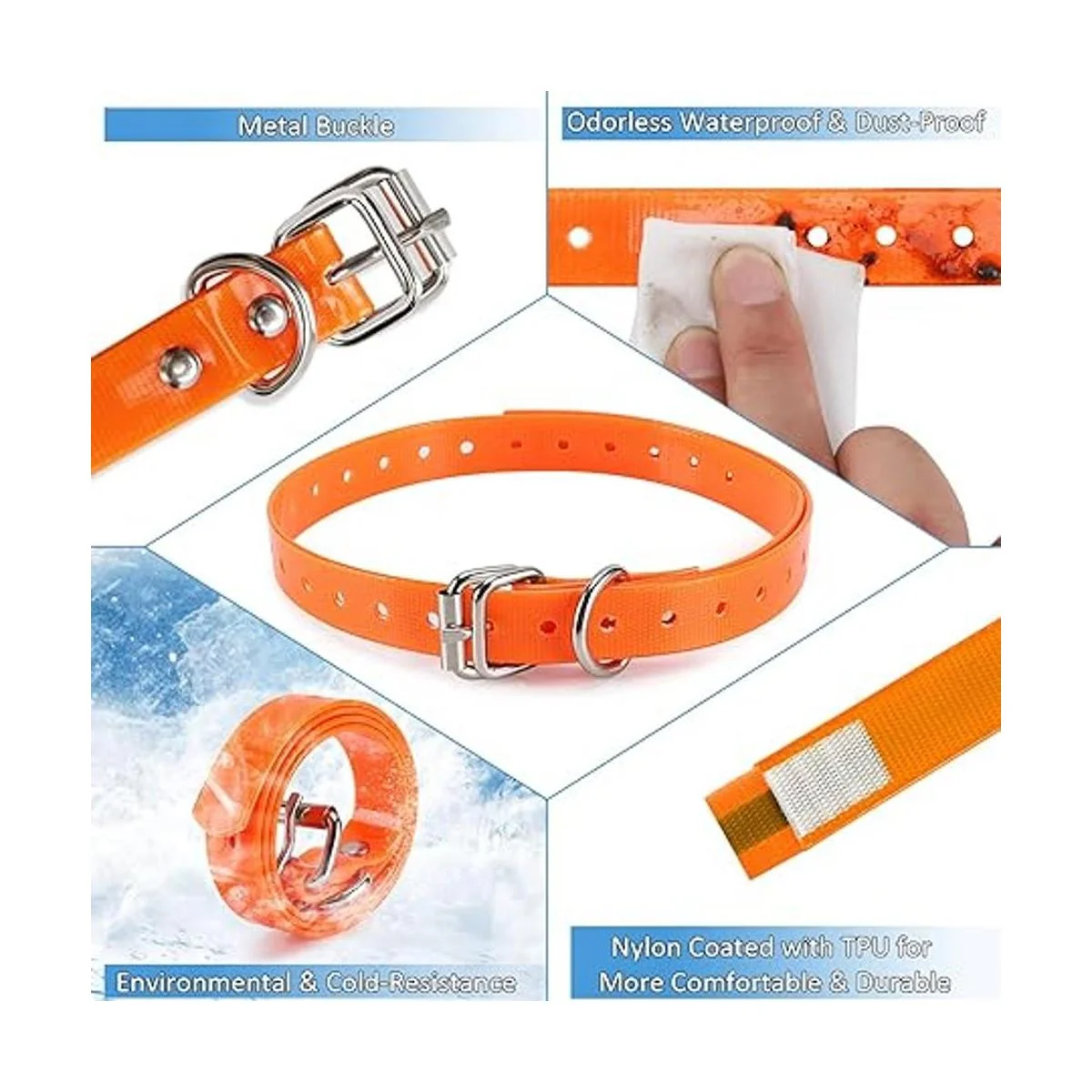 Resistente al agua, sin olor y fácil de limpiar: el collar es completamente inodoro y resistente al agua. Si el collar se moja o se ensucia, puedes hacerlo tan bueno como nuevo limpiándolo con un paño o toalla de papel.