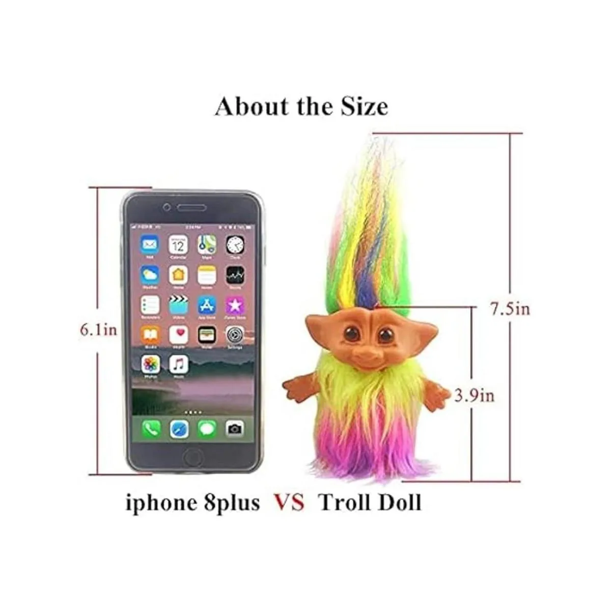 Lucky Troll Dolls, muñecas vintage Troll cromáticas adorables para colecciones, proyectos escolares, artes y manualidades, recuerdos de fiesta, vestido de 7.5 pulgadas de alto incluye la longitud del cabello