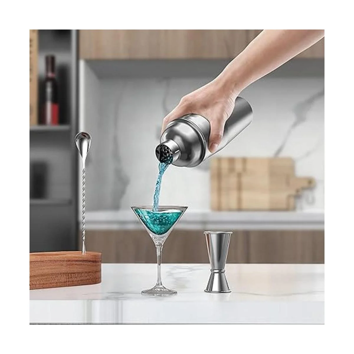 Justo lo que necesitarías: sin campanas o silbatos pero muy eficaz. Las herramientas de coctelera incluyen: coctelera de 24 onzas, medidor de 20/1.4 fl oz, cuchara de mezcla, soporte de madera. Acero inoxidable 304 profesional de grado alimenticio y apto para lavavajillas doméstico o comercial. Tanto si eres un barman aficionado o un barman profesional, eso es todo lo que necesitas