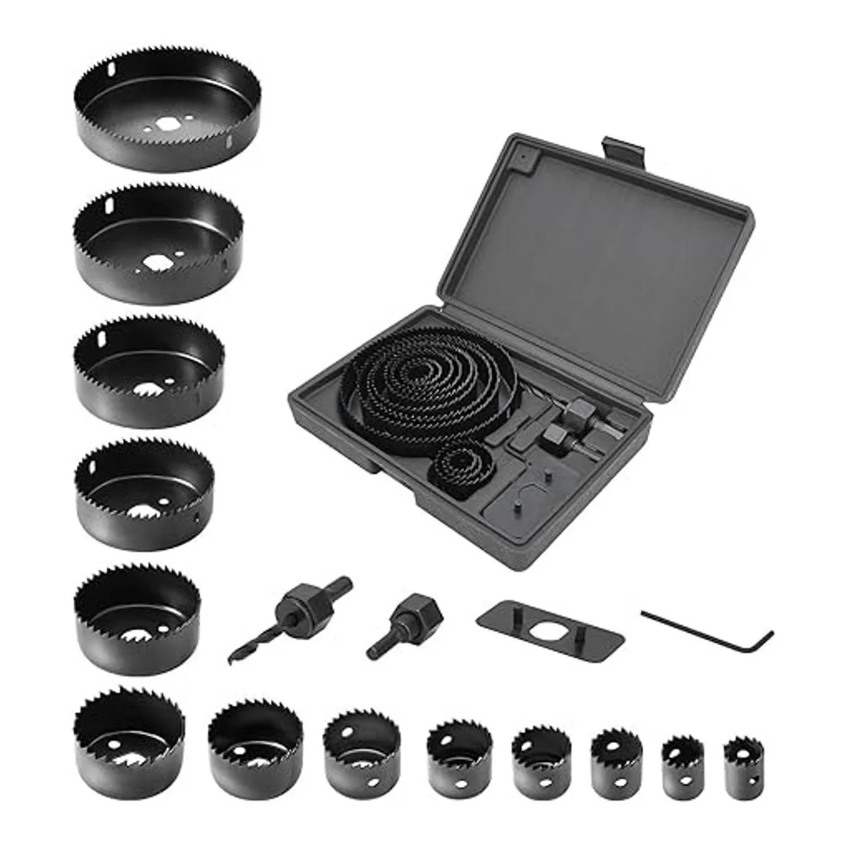 Luckyway Juego de sierra de agujero de 17 piezas, sierra de agujero de 34 a 5 pulgadas con mandril de sierra de agujero para madera, plástico, PVC y paneles de yeso