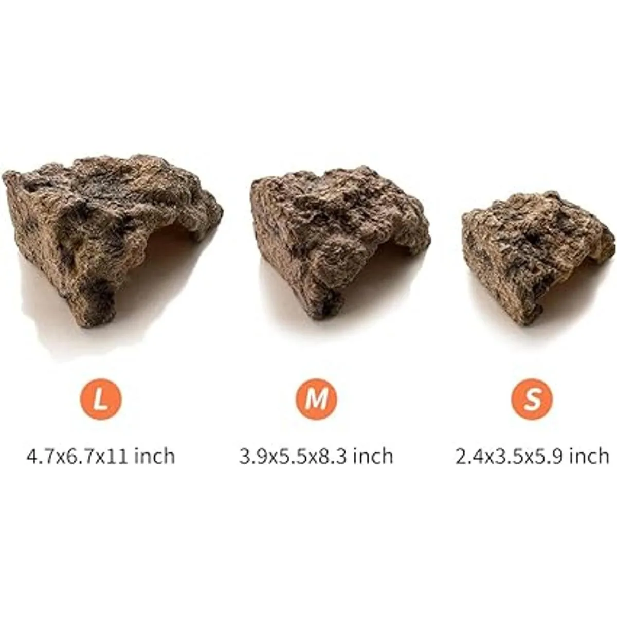 LUCOSIU Escondite de cuevas de roca de simulación de reptiles, decoración de hábitat, escondite de dragón barbudo para tortugas, lagartos serpientes cangrejo