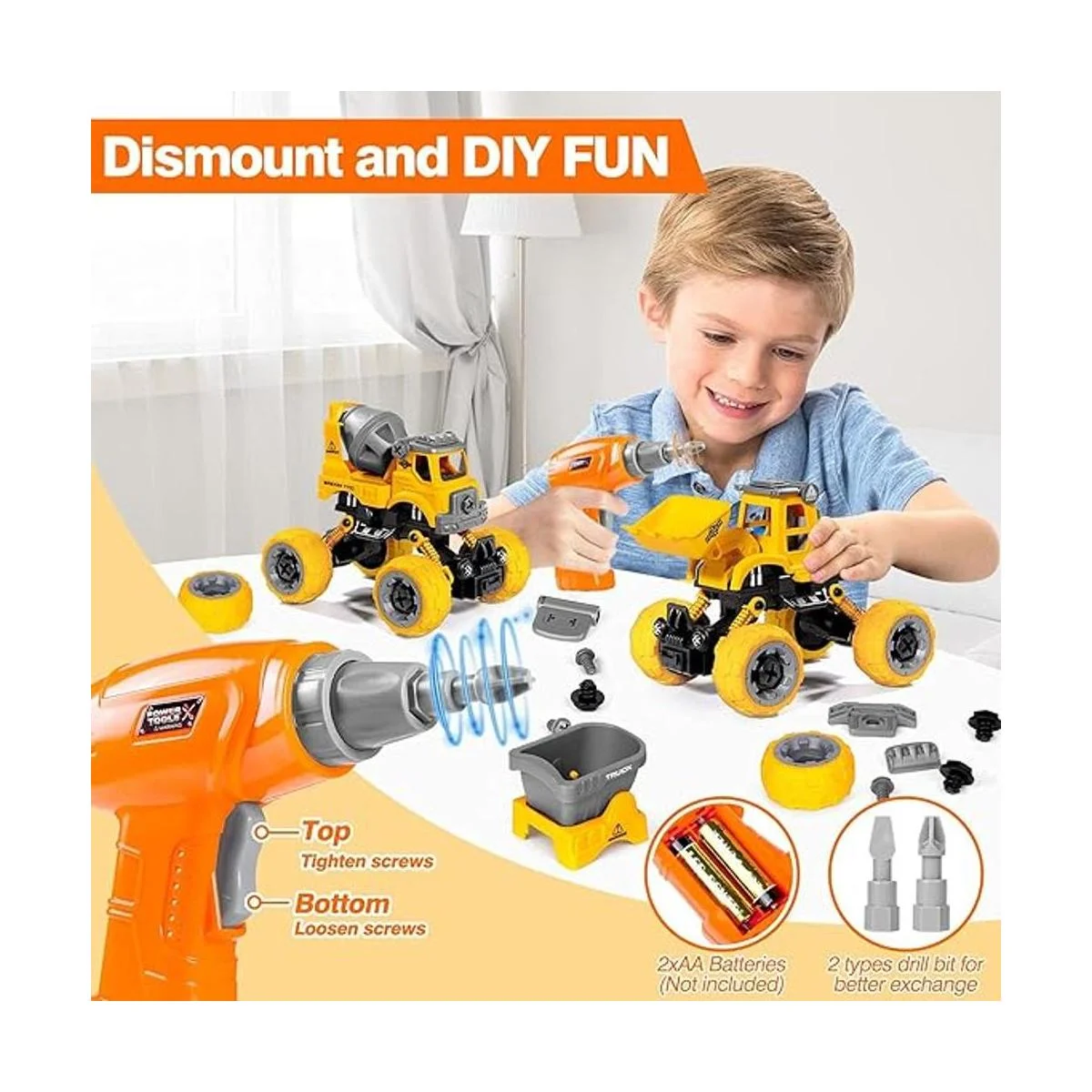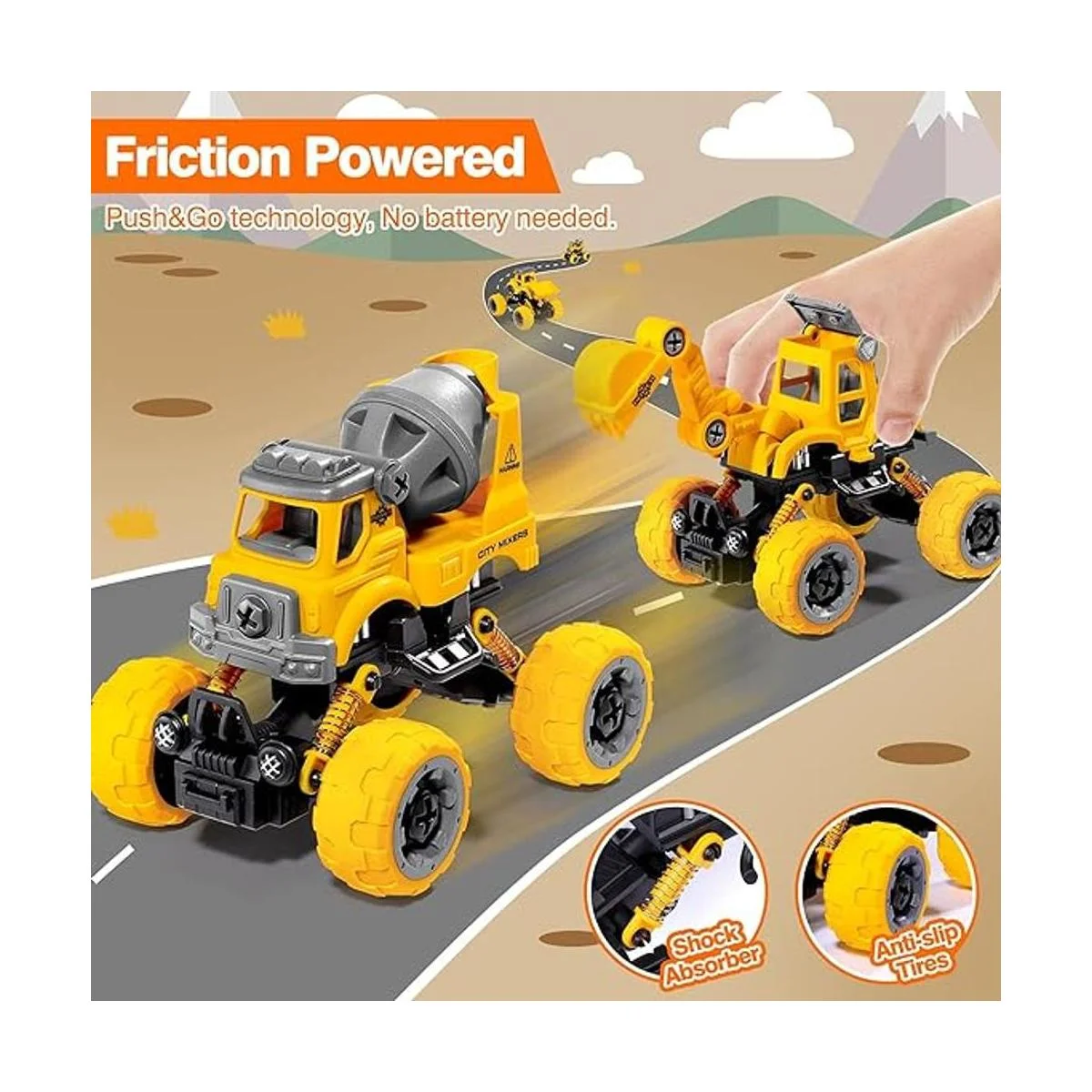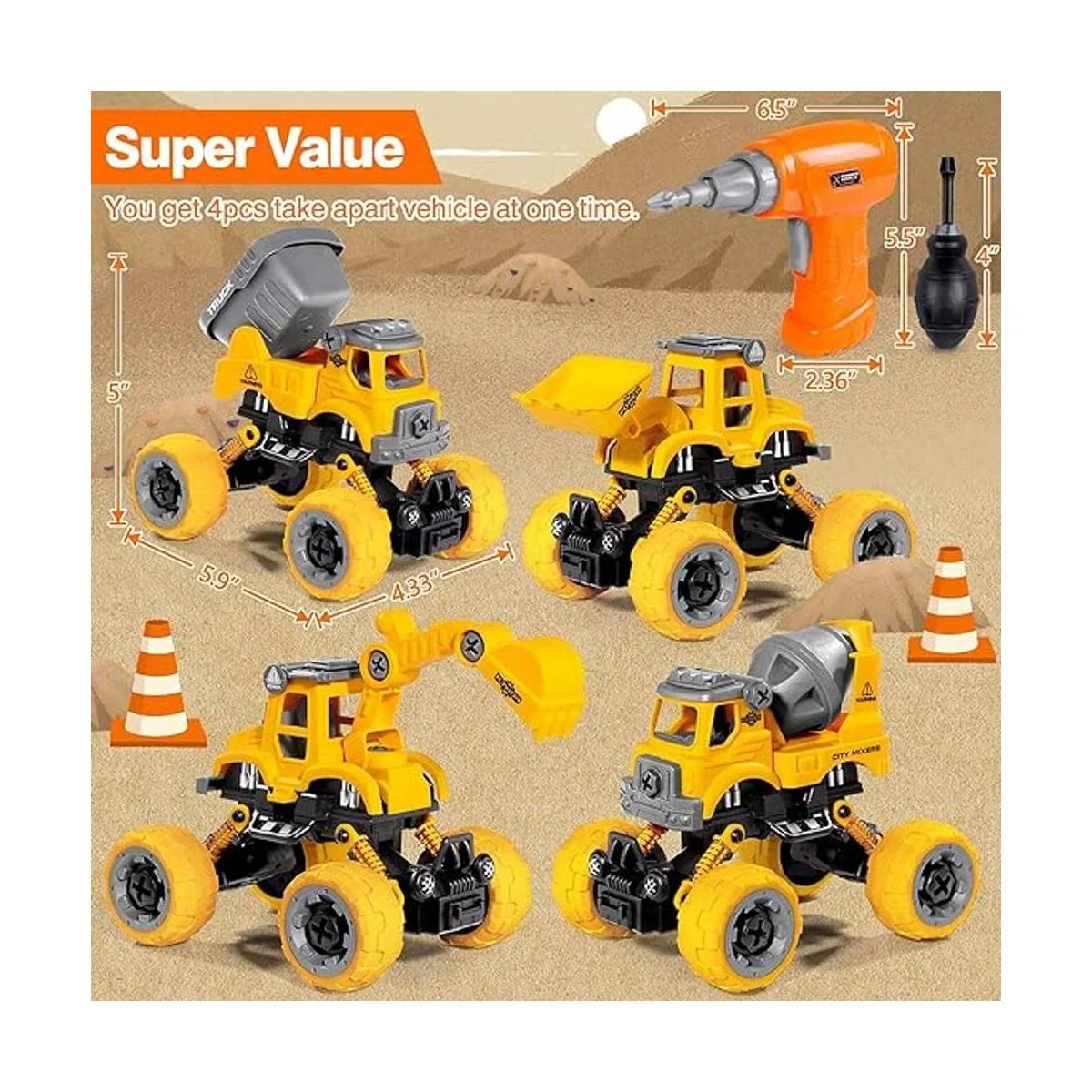 Juego de juguetes desmontables de gran valor: juguetes de construcción 4 en 1 para niños, construyen como excavadora, excavadora, mezcladora de cemento y camión volquete a la vez. Hecho de plástico ABS no tóxico de alta calidad, bordes lisos pulidos, no daña a tus pequeños. Excelentes camiones de juguete cumplen con el estándar de juguetes de Estados Unidos de CPSIA y ASTM, juguetes de camión súper seguros para niños y niñas de 3, 4, 5, 6, 7, 8 años