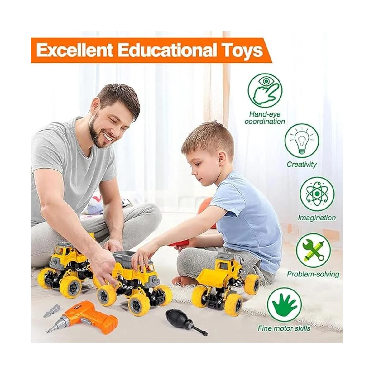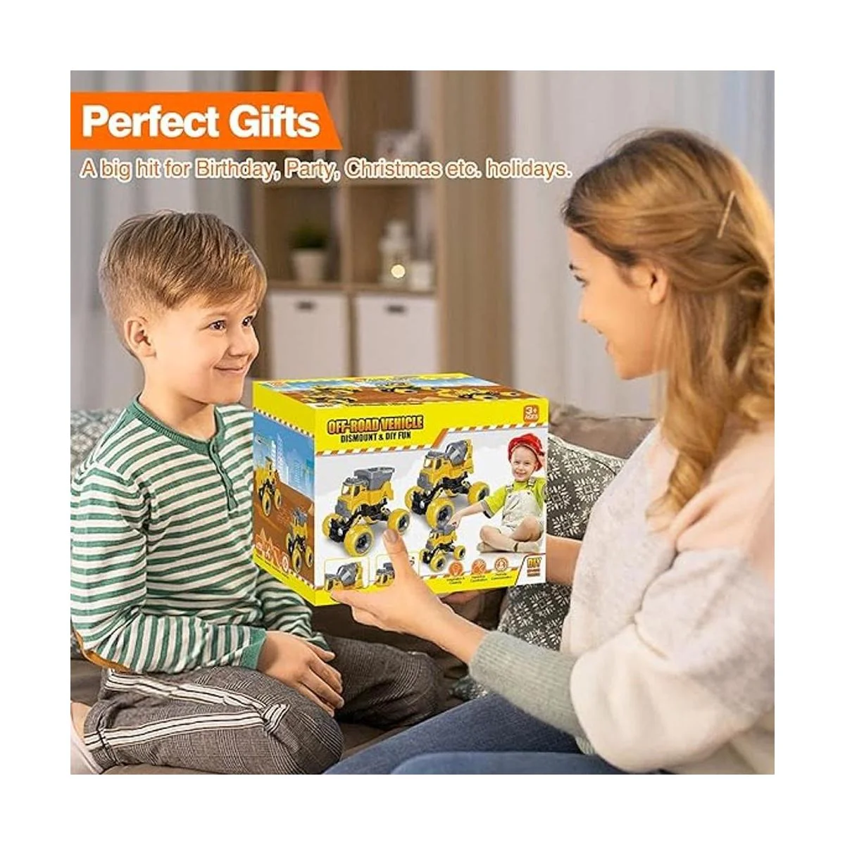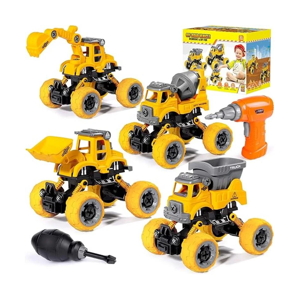 Juego de juguetes desmontables de gran valor: juguetes de construcción 4 en 1 para niños, construyen como excavadora, excavadora, mezcladora de cemento y camión volquete a la vez. Hecho de plástico ABS no tóxico de alta calidad, bordes lisos pulidos, no daña a tus pequeños. Excelentes camiones de juguete cumplen con el estándar de juguetes de Estados Unidos de CPSIA y ASTM, juguetes de camión súper seguros para niños y niñas de 3, 4, 5, 6, 7, 8 años