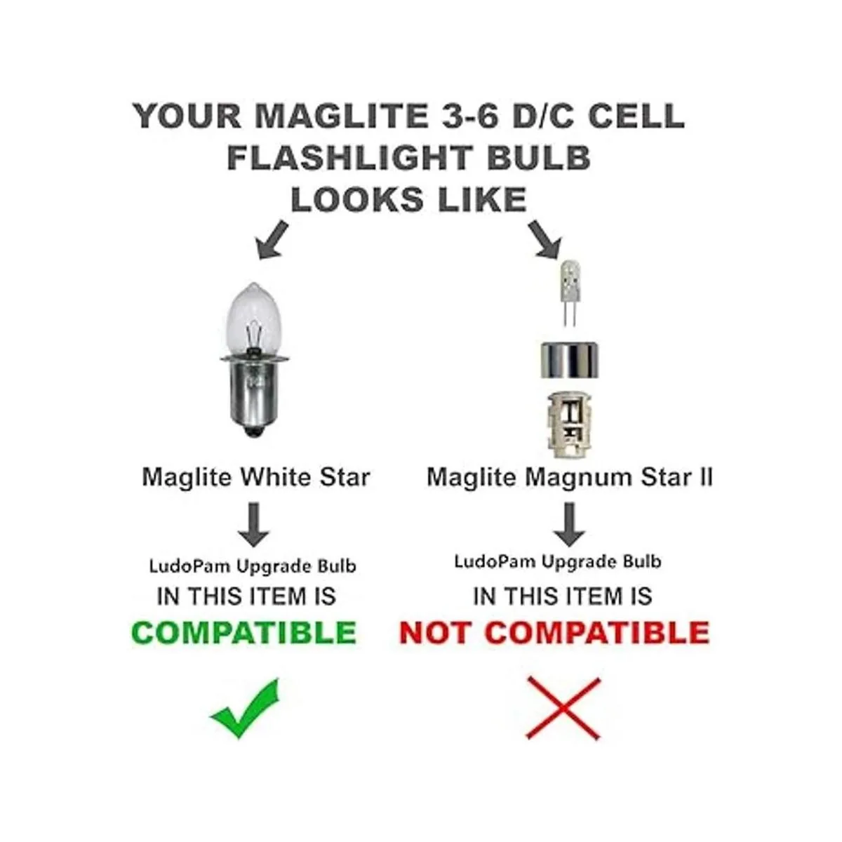 Compatible: solo compatible con linterna Maglite de 3, 4, 5, 6 celdas D o C no con otra linterna, no compatible con antorchas que utilizan bombillas de xenón MAGNUM STAR II