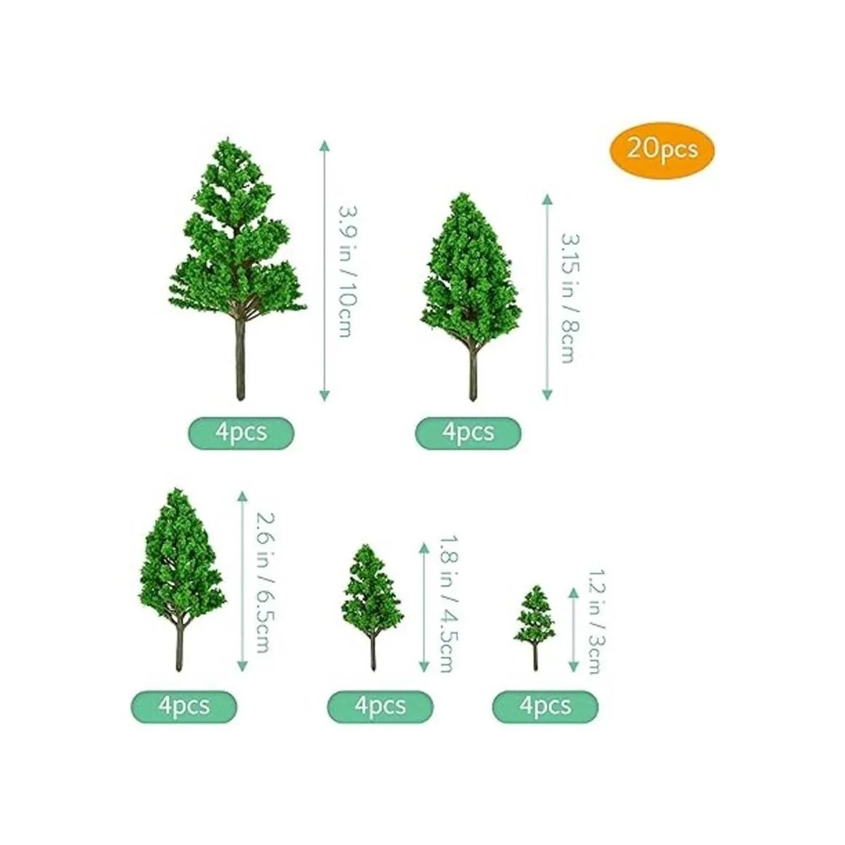 Varios tamaños: el paquete incluye 20 árboles de modelo mixto. Estos árboles vienen en cinco tamaños, altura aproximada: 3.9 pulgadas, 3.15 pulgadas, 2.6 pulgadas, 1.8 pulgadas, 1.2 pulgadas cada tamaño 4 piezas