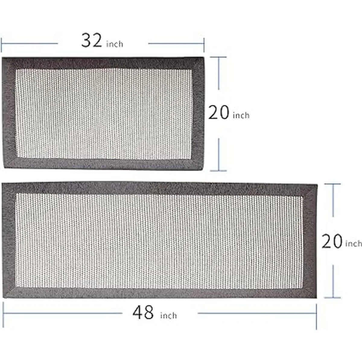 Alfombra de cocina multiusos: este juego de alfombras antideslizantes lavables contiene alfombrillas de cocina rectangulares para suelo de 20 pulgadas de ancho x 32 pulgadas de largo y 20 pulgadas de ancho x 48 pulgadas de largo. Este juego de alfombras de cocina de 2 piezas puede proporcionar más comodidad cuando a menudo estás de pie, el baño, tapete de bienvenida frontal interior, porche, sala de estar, puerta trasera, jardín, lavandería y cualquier otro espacio en blanco.