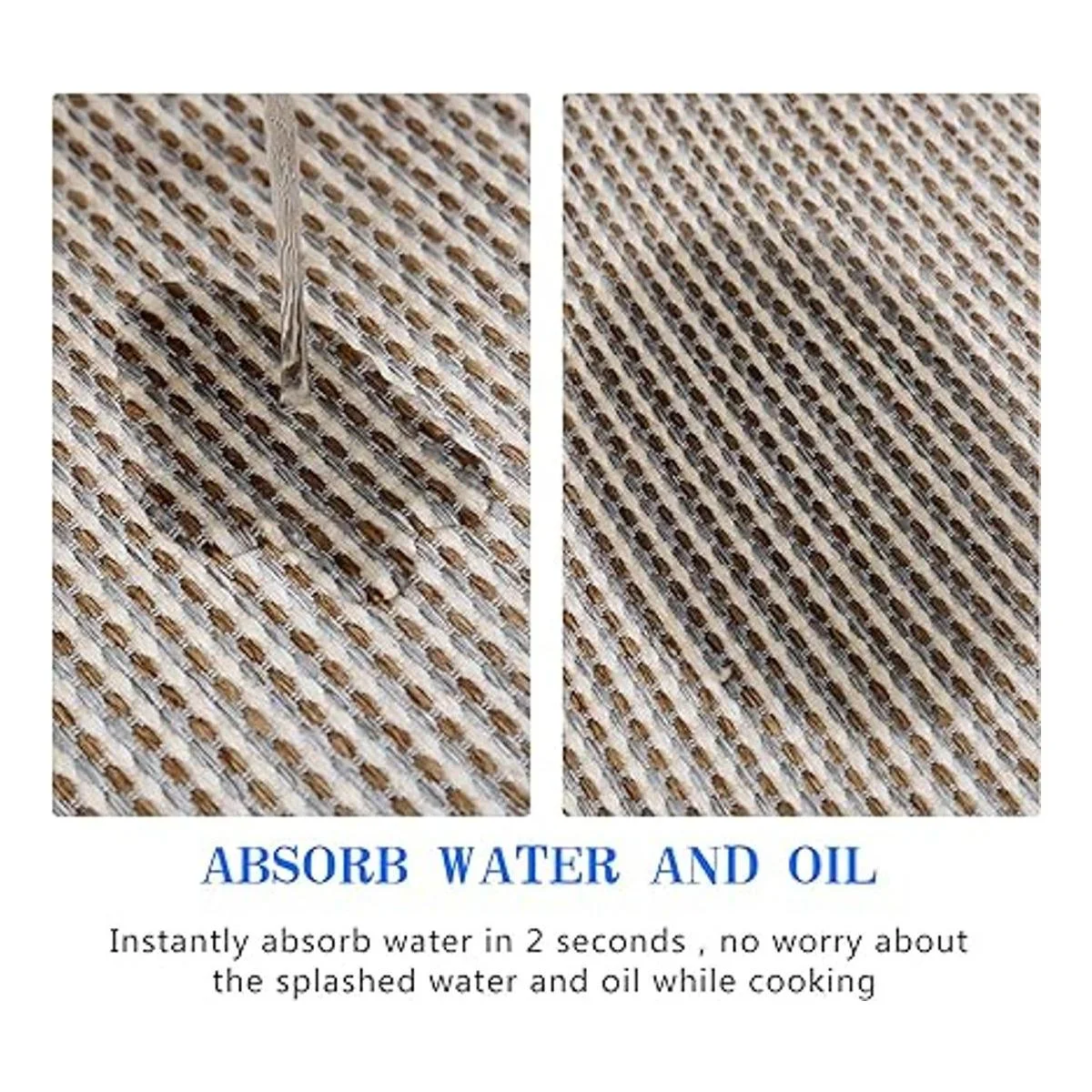Alfombra de cocina absorbente: la tela de fibra absorbente de alta calidad y la capa intermedia no tejida proporcionan al juego de alfombrillas de cocina un fuerte rendimiento de absorción de agua, estas alfombras para suelo de cocina pueden absorber perfectamente agua, aceite, salsa o residuos de alimentos durante el proceso de cocción, y pueden mantener el suelo de la cocina limpio y durante mucho tiempo. Funciona muy bien como una alfombrilla de fregadero de cocina o una alfombrilla de lavandería.