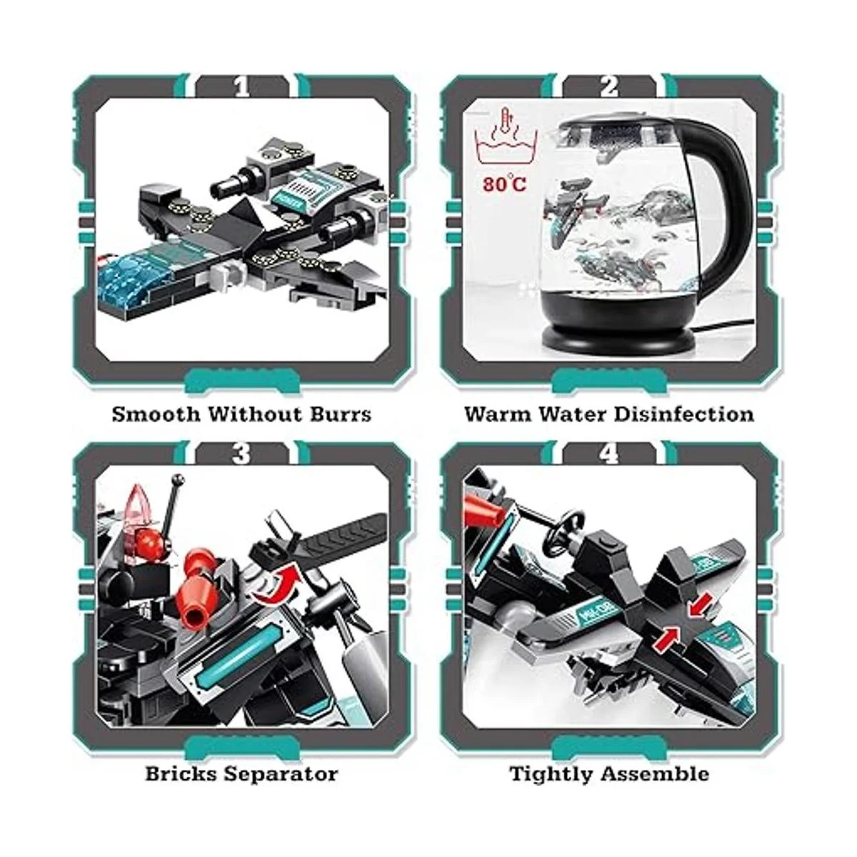Juguetes de creatividad e imaginación: este juego de juguetes de construcción cubre guía de instrucciones paso a paso y separador de ladrillos. Se puede combinar en muchos patrones, helicóptero, luchador, dron y cualquier cosa que puedan imaginar Desarrolla la imaginación, la creatividad, la capacidad práctica, las habilidades sociales y las habilidades de resolución de problemas.