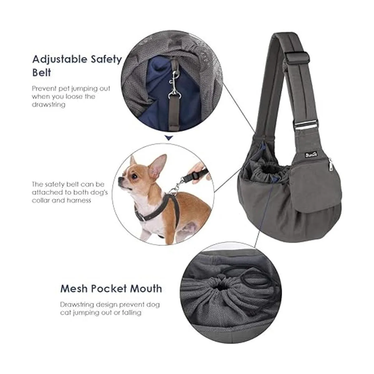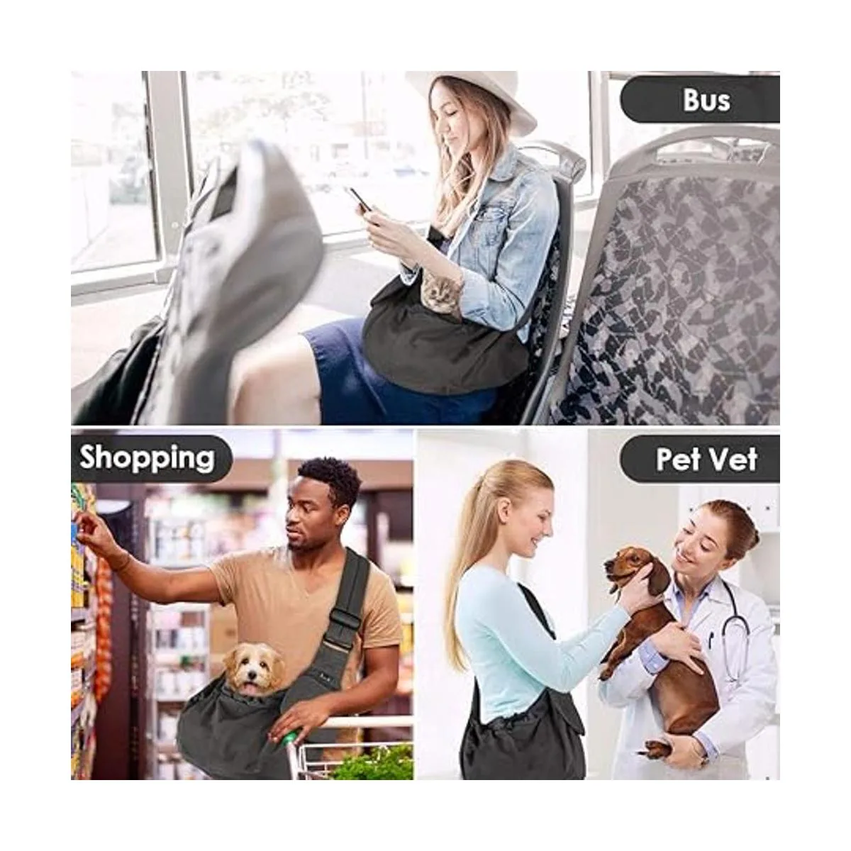 Lukovee Bolsa de transporte para mascotas, bolsa de transporte para cachorros y gatos con soporte inferior, correa de hombro acolchada ajustable y apertura de bolsa, bolsillo frontal con cremallera, cinturón de seguridad para perros pequeños
