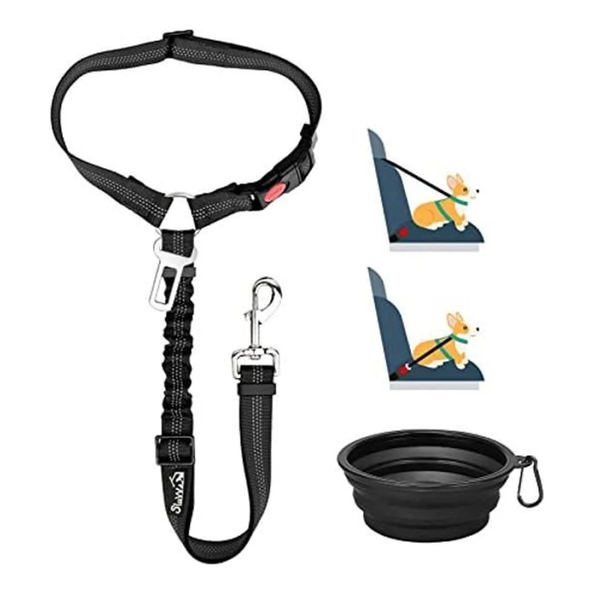 Clip Daul para sujeción de coche: cinturón de seguridad único para perro SlowTon diseñado con formas de sujeción de doble asiento, sujeción de clip y reposacabezas, que le permiten adaptarse a cualquier modelo de vehículo. Además, también se puede utilizar como una correa tradicional para perro, simplemente mantén el bucle del reposacabezas como el mango y ve a caminar.