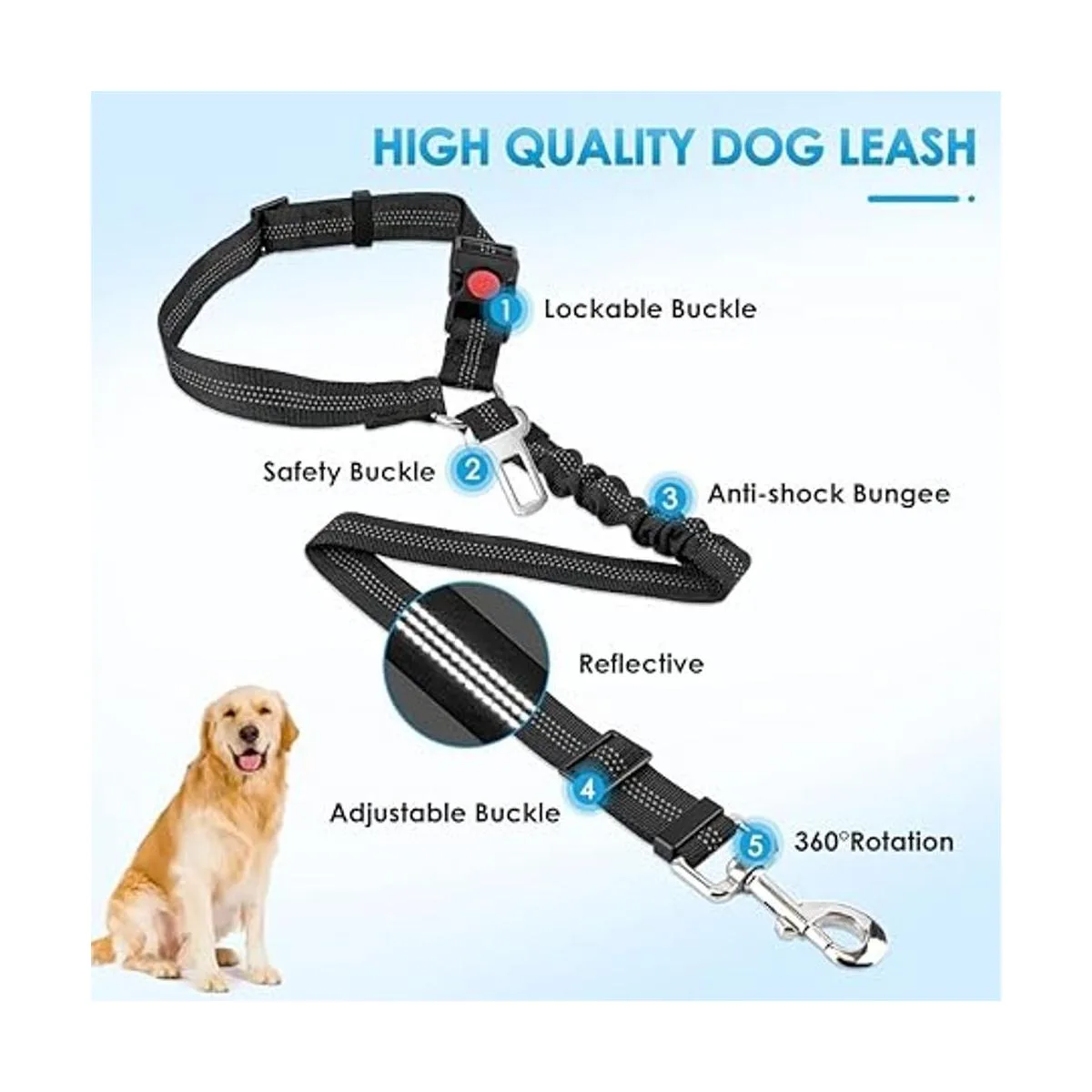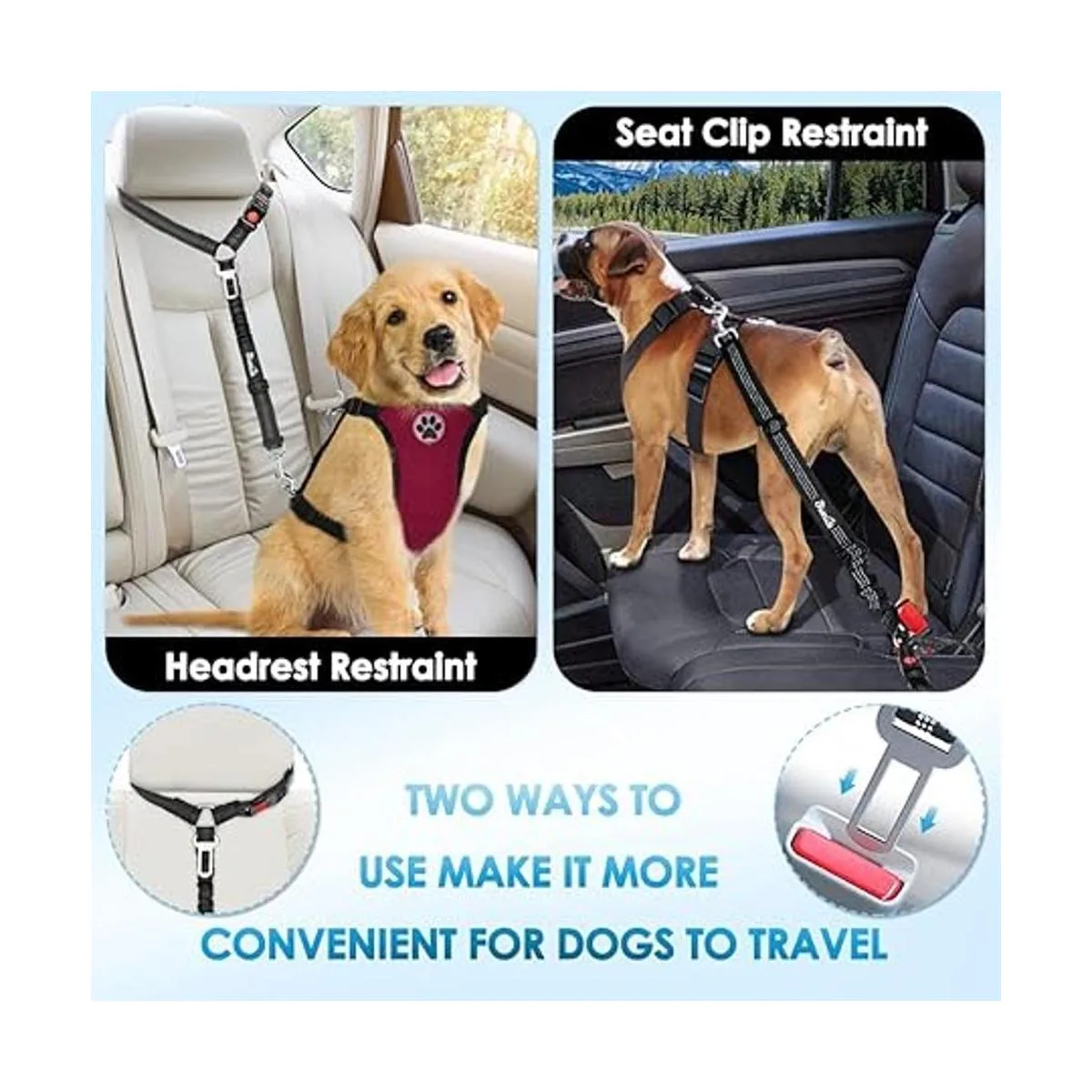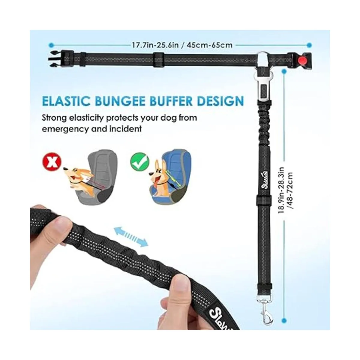 Lukovee Cinturón de seguridad de coche para perro, paquete de 2 correas de seguridad ajustables para mascotas, con elástico elástico reflectante para arnés de perro, viaje, uso diario