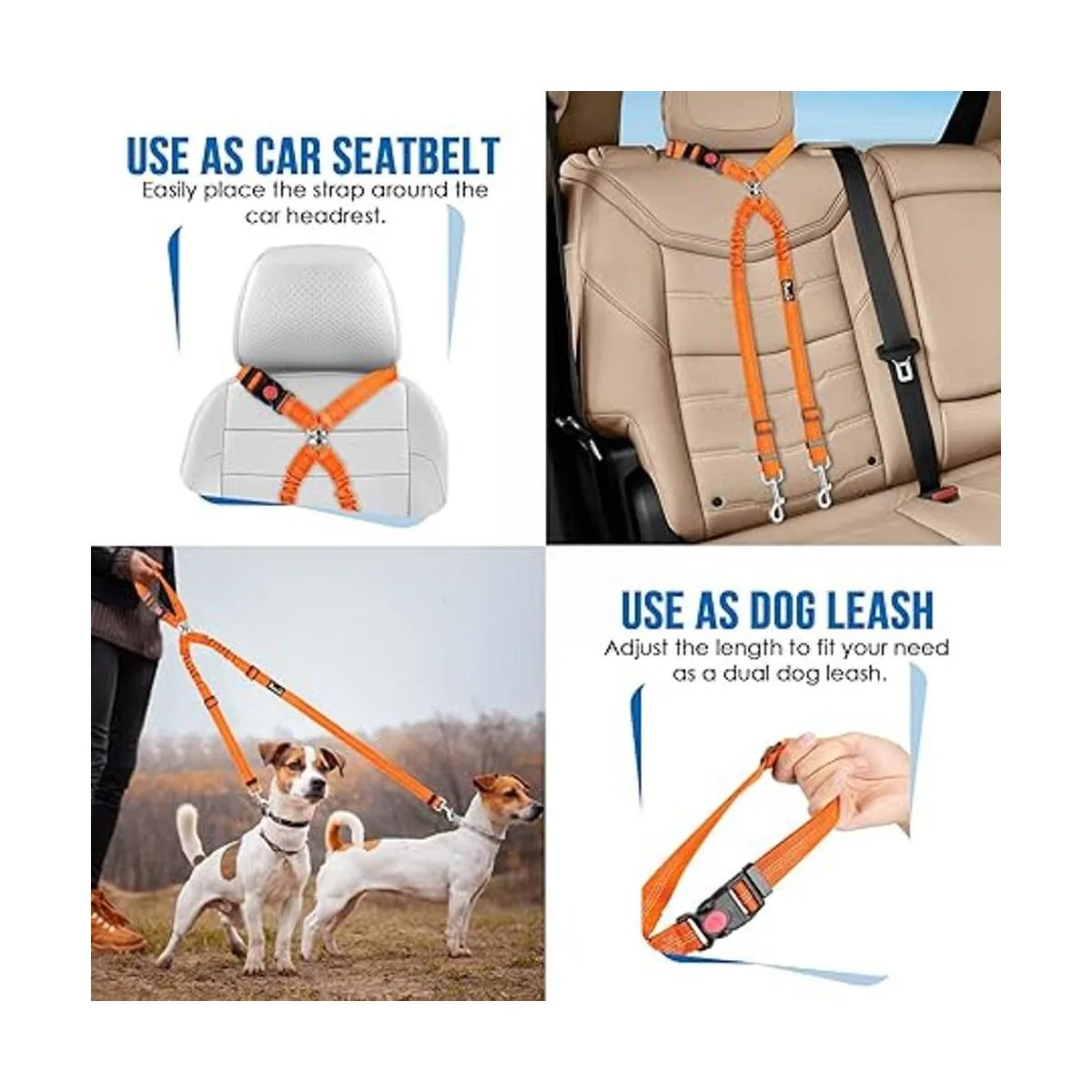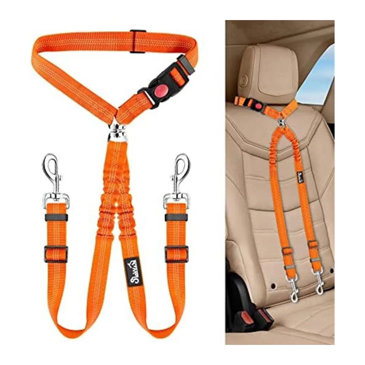 Cinturón de seguridad de 2 usos: no es solo un cinturón de seguridad para mascotas, sino también una correa doble general. Ya sea caminar o conducir, le da al perro la protección más segura y fácil de controlar a 2 perros.