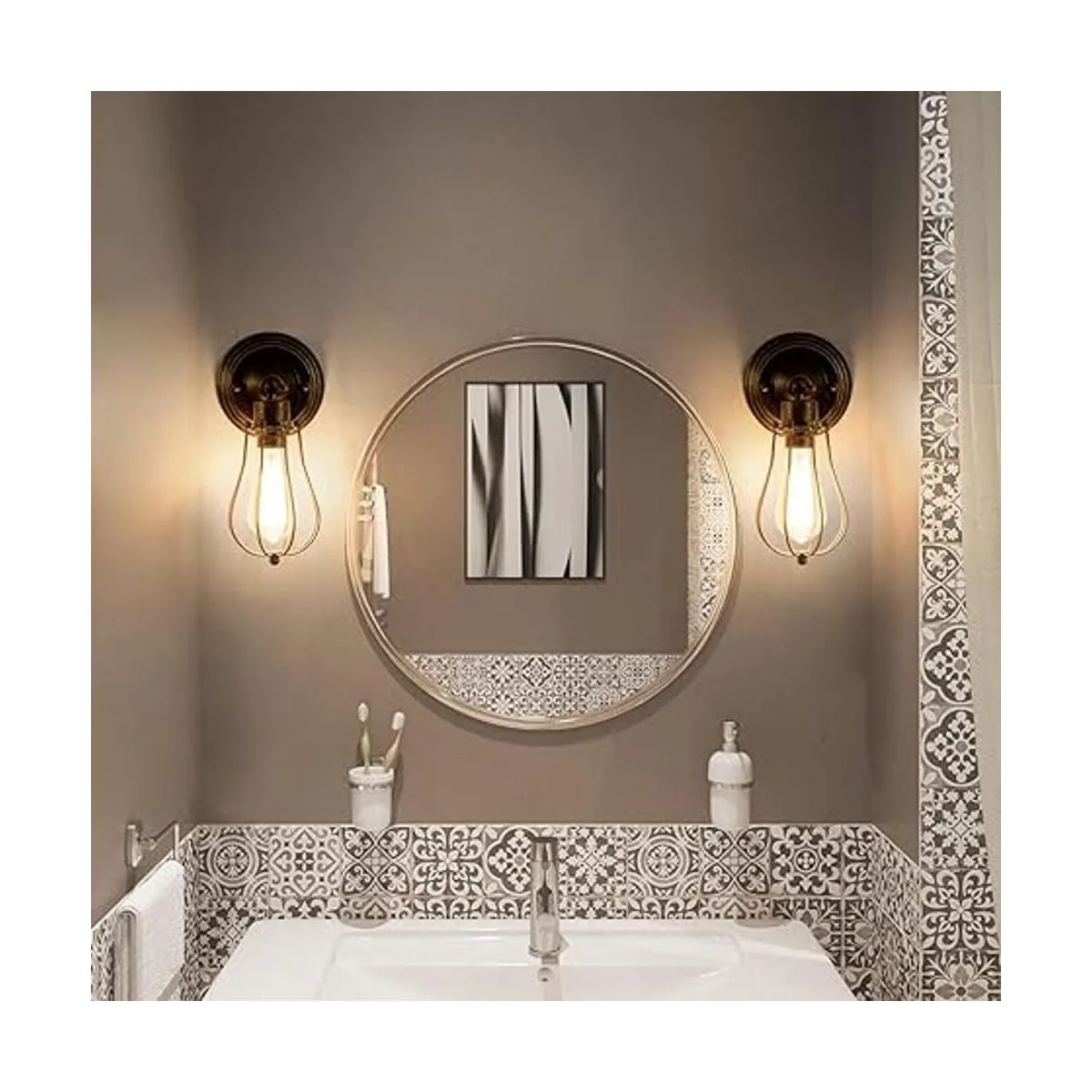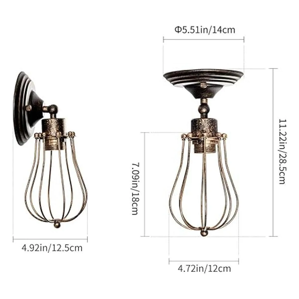 LULING Aplique de pared industrial con iluminación vintage ajustable para lámpara de alambre, jaula de metal, luz de pared, estilo Edison antiguo, espejo de porche sin bombilla color bronce bronce