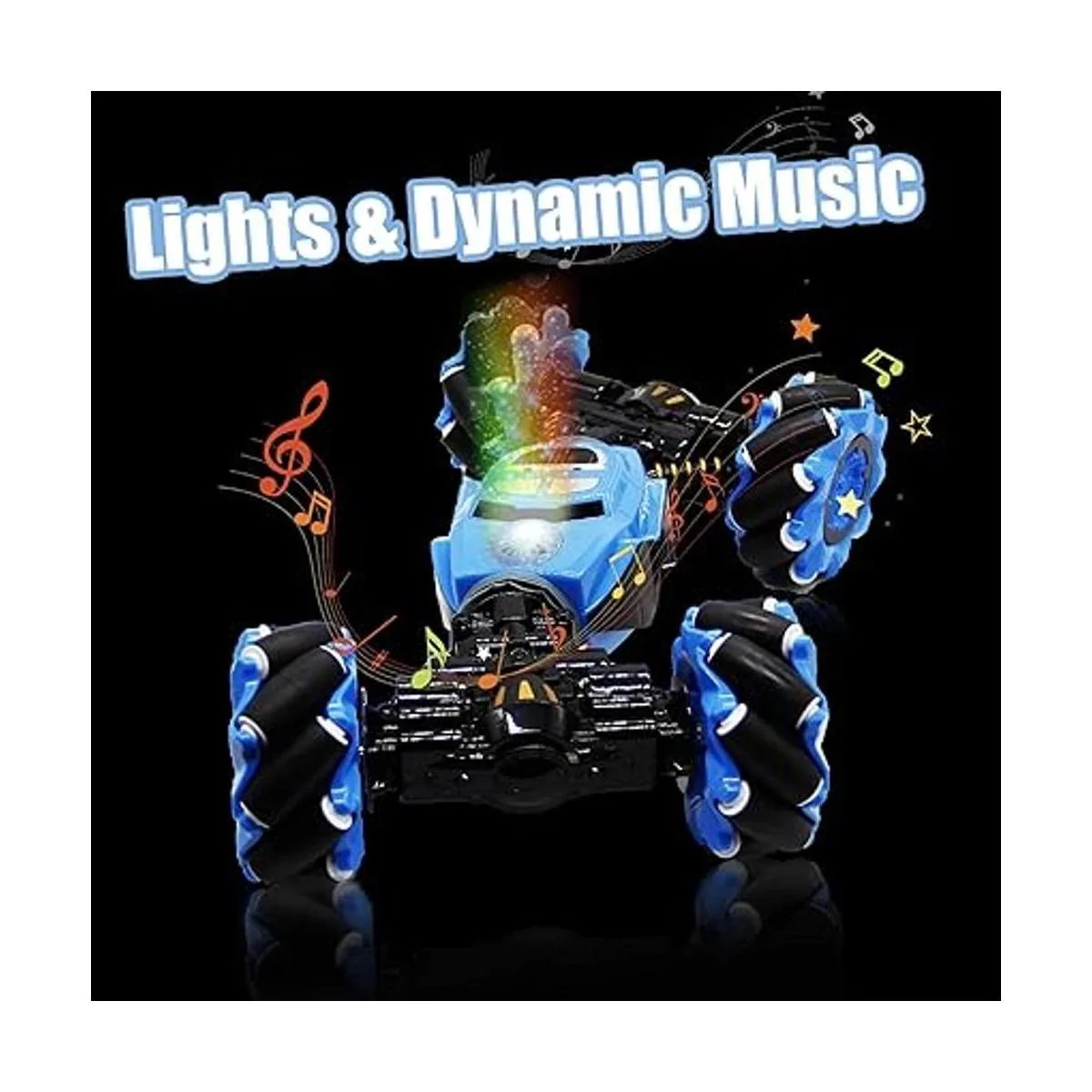 Increíble música y luz: el coche de acrobacias de Lulu Home RC brilla luces brillantes y hermosas y se mueve con música popular. Pulsa brevemente el interruptor en el control remoto de tu reloj para encender o apagar la música y las luces.