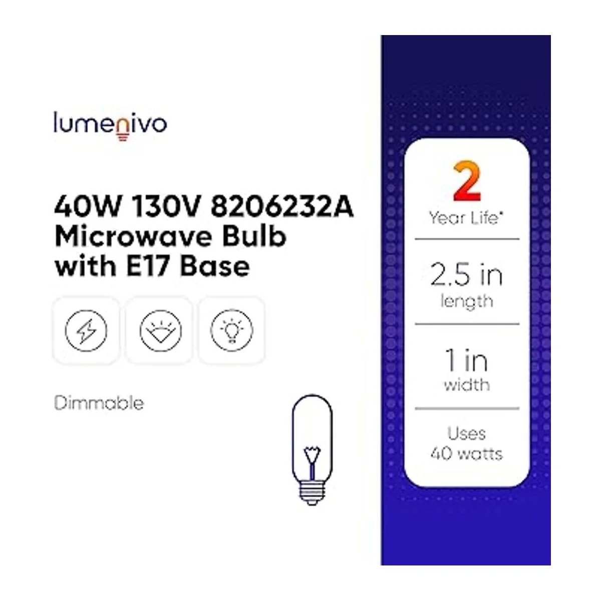 Lumenivo Bombilla de repuesto para microondas 8206232a Whirlpool de 40 W, base E17, 130 V, 40 W, sustituye a bombillas de microondas de 125 V, 40 W, 6 unidades