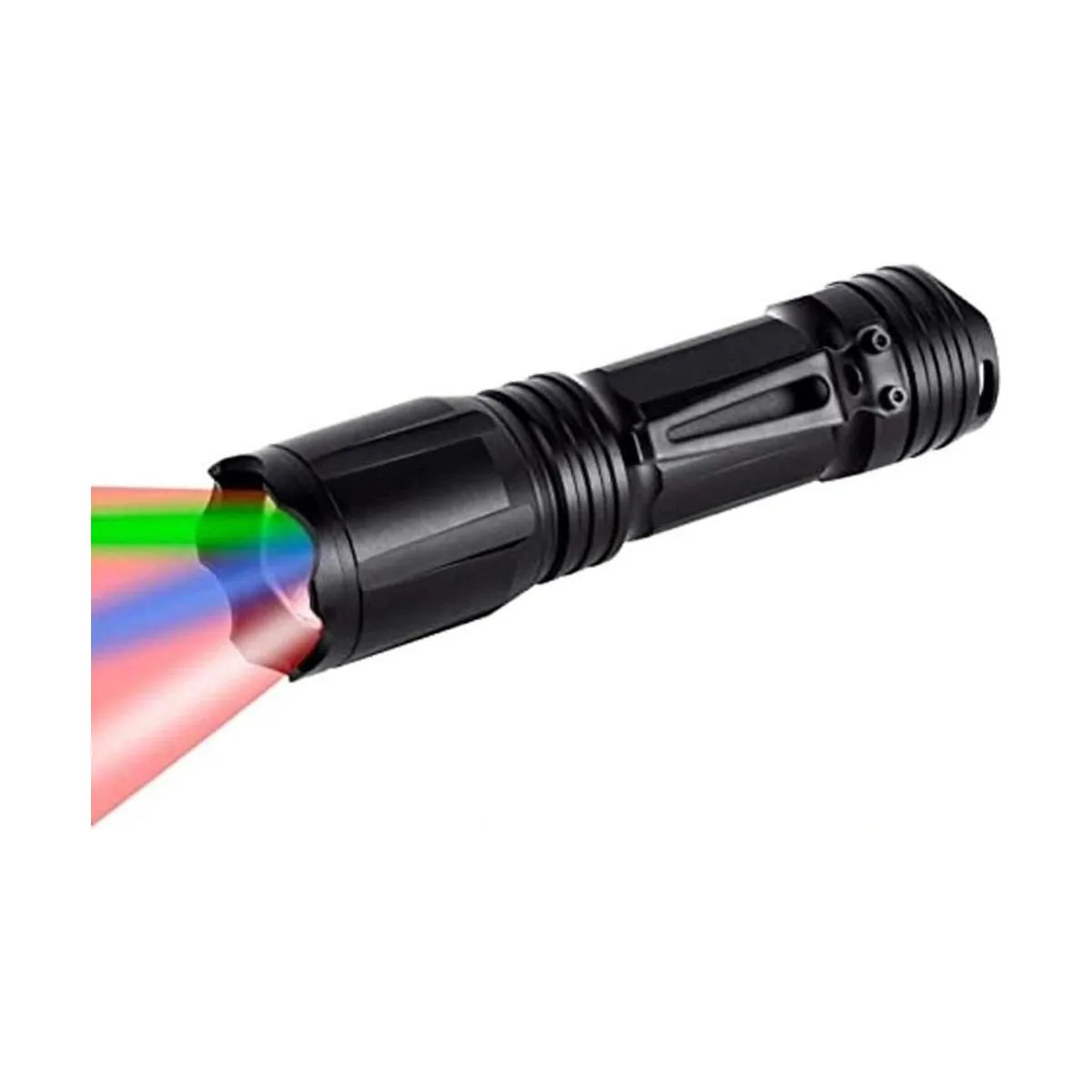 LUMENSHOOTER Linterna roja mejorada con Zoomable, luz flash 4 colores en 1, luz flash verde, rojo, azul, blanco, multicolor RGBW con memoria para visión nocturna, pesca, astronomía pilas no incluidas