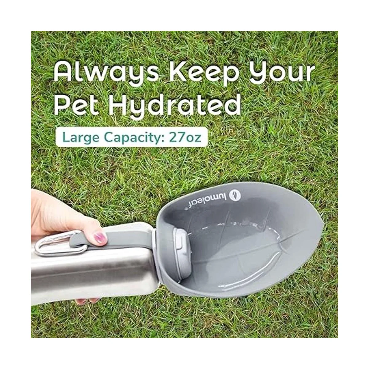 Accesorio esencial de viaje para mascotas. Cuenta con una práctica correa de muñeca y un mosquetón de aluminio extraíble, la botella de agua de viaje para perros LumoLeaf de 27 onzas es fácil de transportar o enganchar a la mochila. Perfecto para viajes por carretera, caminar, camping, senderismo o cualquier otra aventura.