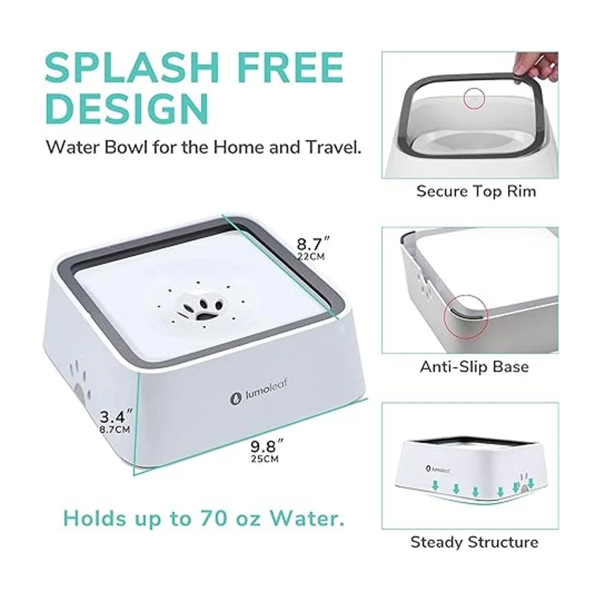 Cuenco de agua extra grande para perros sin derrames de LumoLeaf. El cuenco de agua mejorado para perros puede contener hasta 2 litros de agua. Fácil de mantener las razas pequeñas, medianas o grandes hidratadas todo el día. También es ideal para hogares con múltiples mascotas.