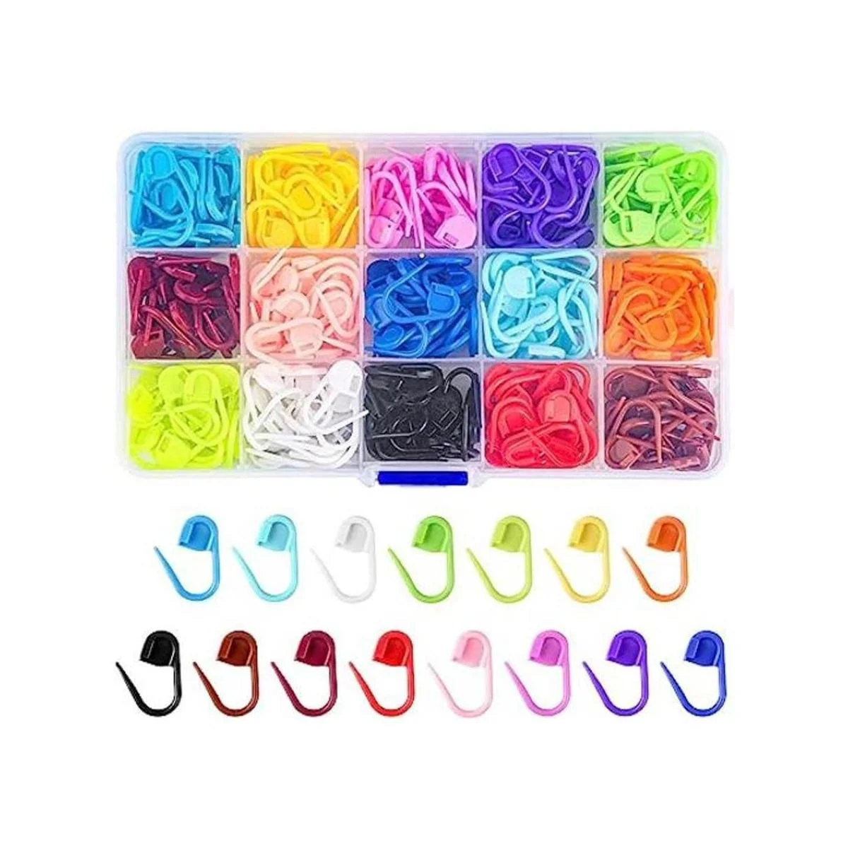 LUNARM 300 clips de aguja de puntada, 15 colores de plástico, con estuche de almacenamiento transparente para hacer manualidades y marcadores de hebilla