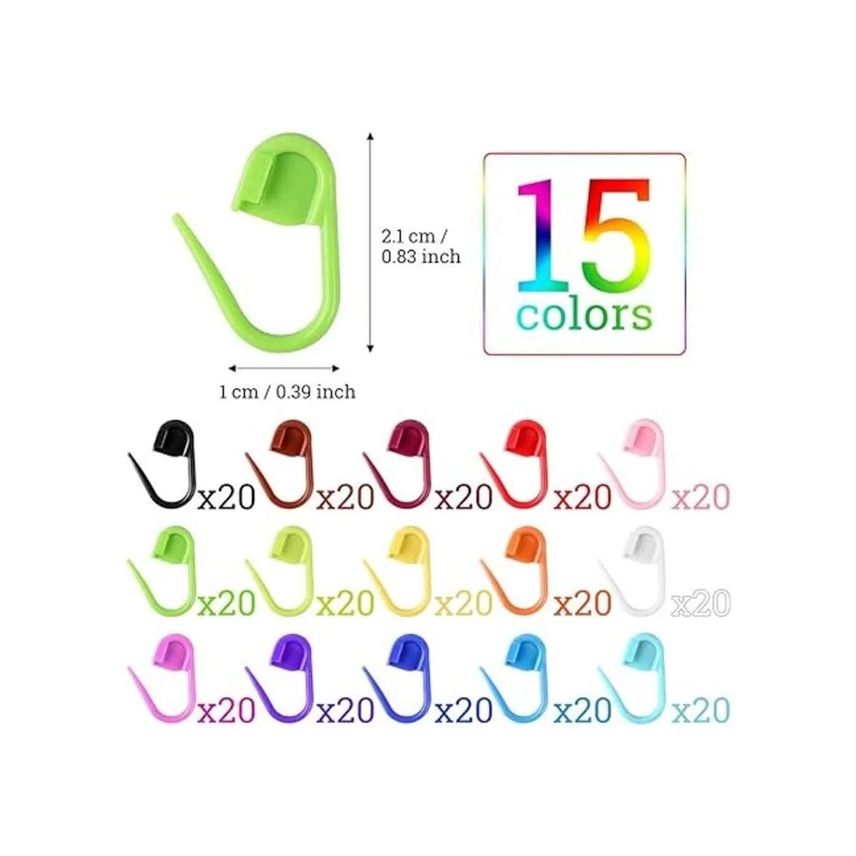 Amplia aplicación: suficientes cantidades apoyan tu interés artesanal. 300 clips de aguja de puntada con 15 colores que son bonitos y brillantes para tu elección. El clip de aguja de puntada es el accesorio complementario para el proyecto de tejer, ganchillo, tejido, artes de bricolaje, proyectos de manualidades, álbumes de recortes, ropa de tela.