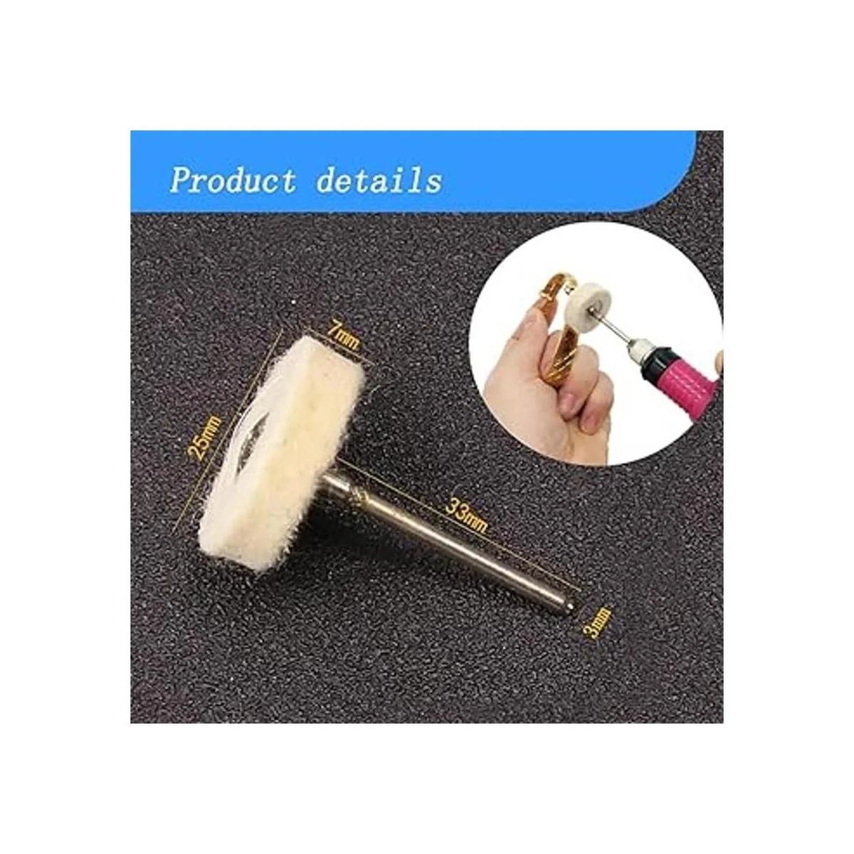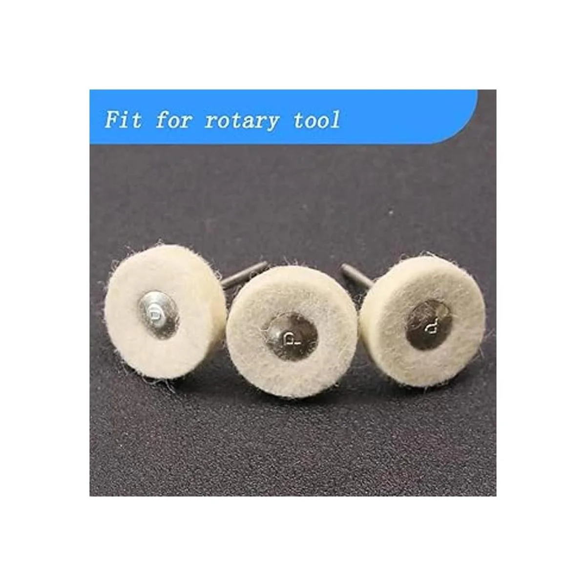 : la rueda de pulido de fieltro de lana comprimida es de 0.984 in, los vástagos son de 0.118 in, las ruedas de pulido de mandril se adaptan a kit de pulido Dremel, pulidores, taladros de mano, etc.