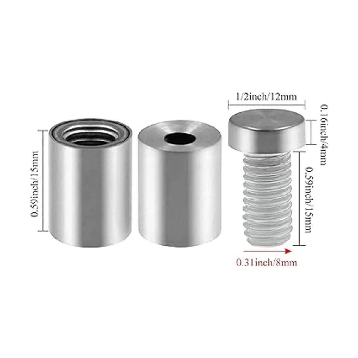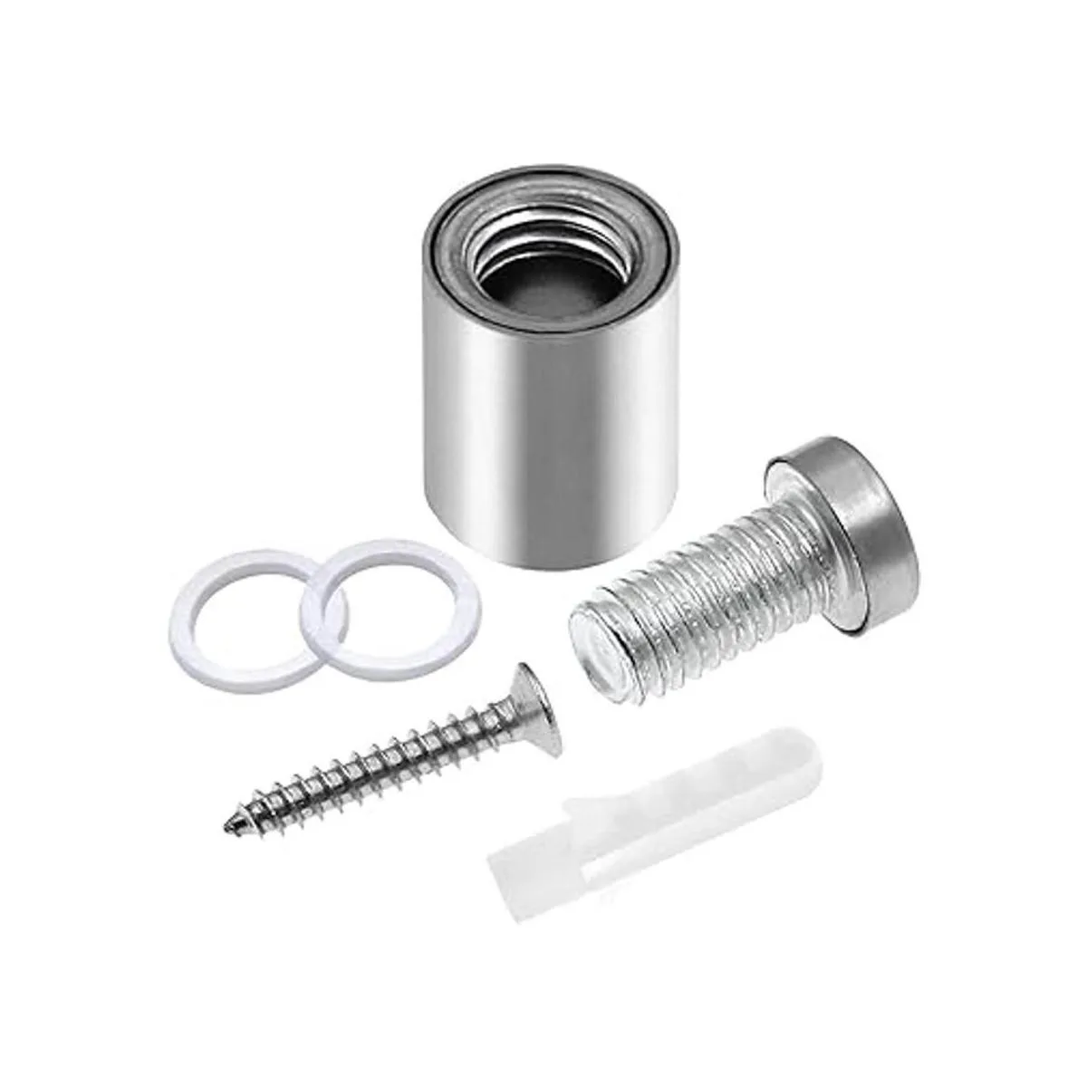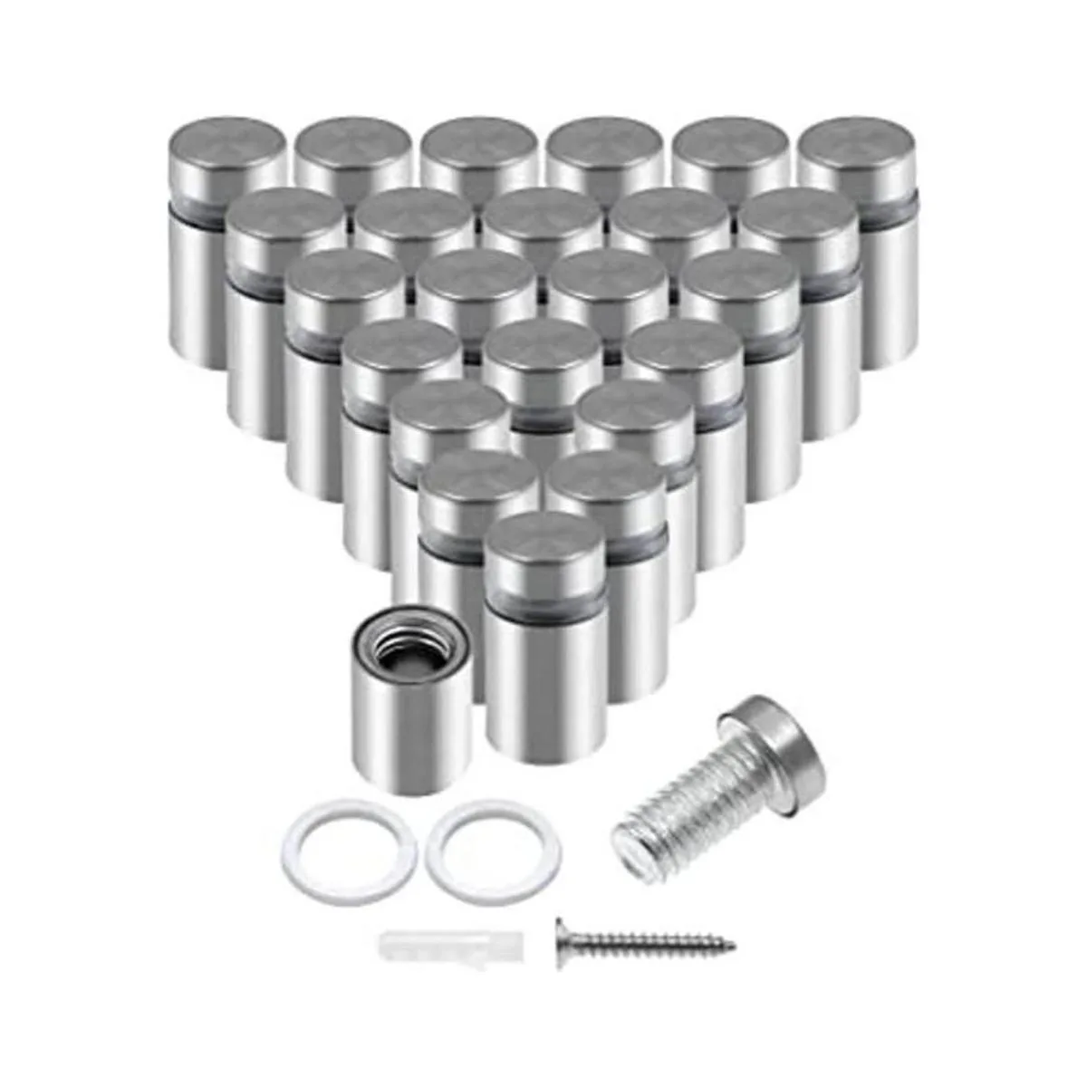 Hardware de montaje de soporte: los tornillos de soporte de señal son un hardware montado en la pared diseñado para soportar paneles de acrílico, madera, aluminio, plexiglás, vidrio o cualquier otro sustrato de visualización de mensajería, y también se utiliza para apoyar una mesa de cristal sobre una base de madera.