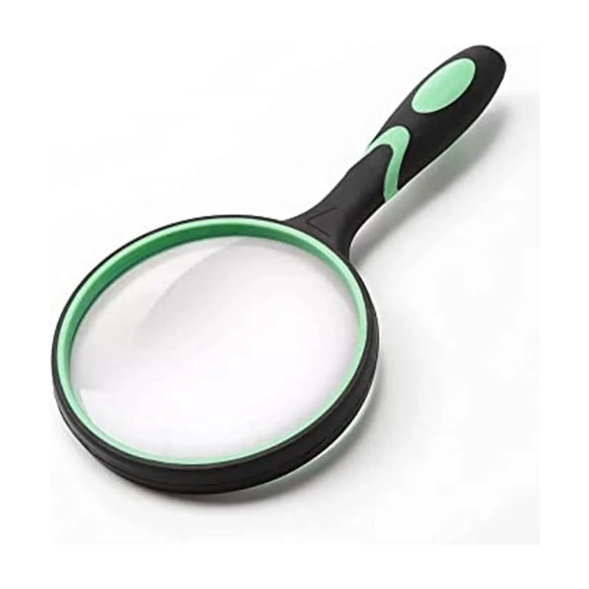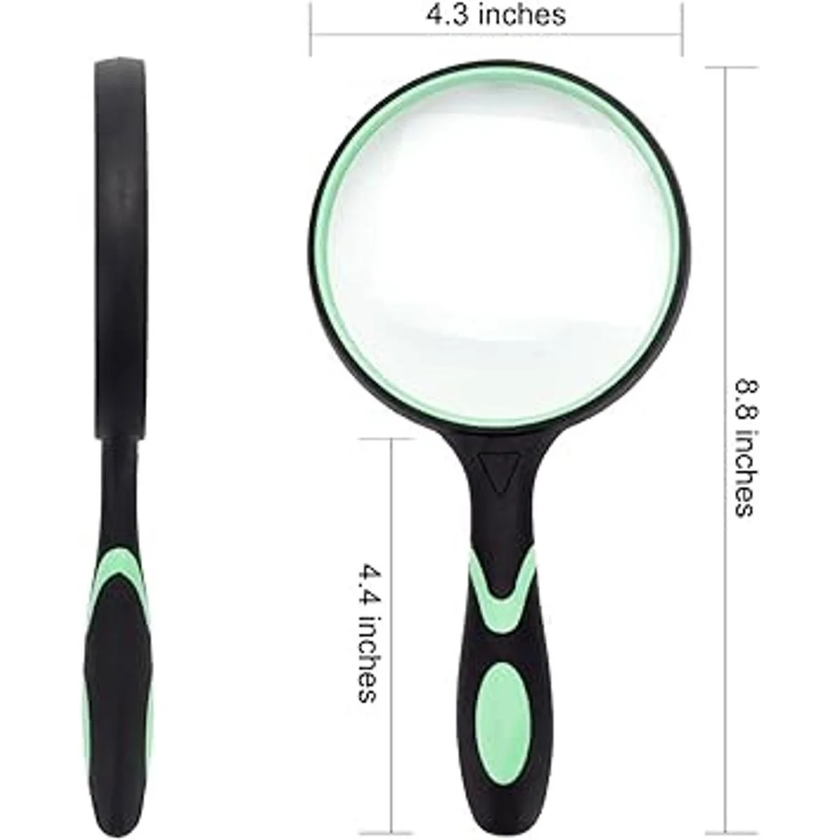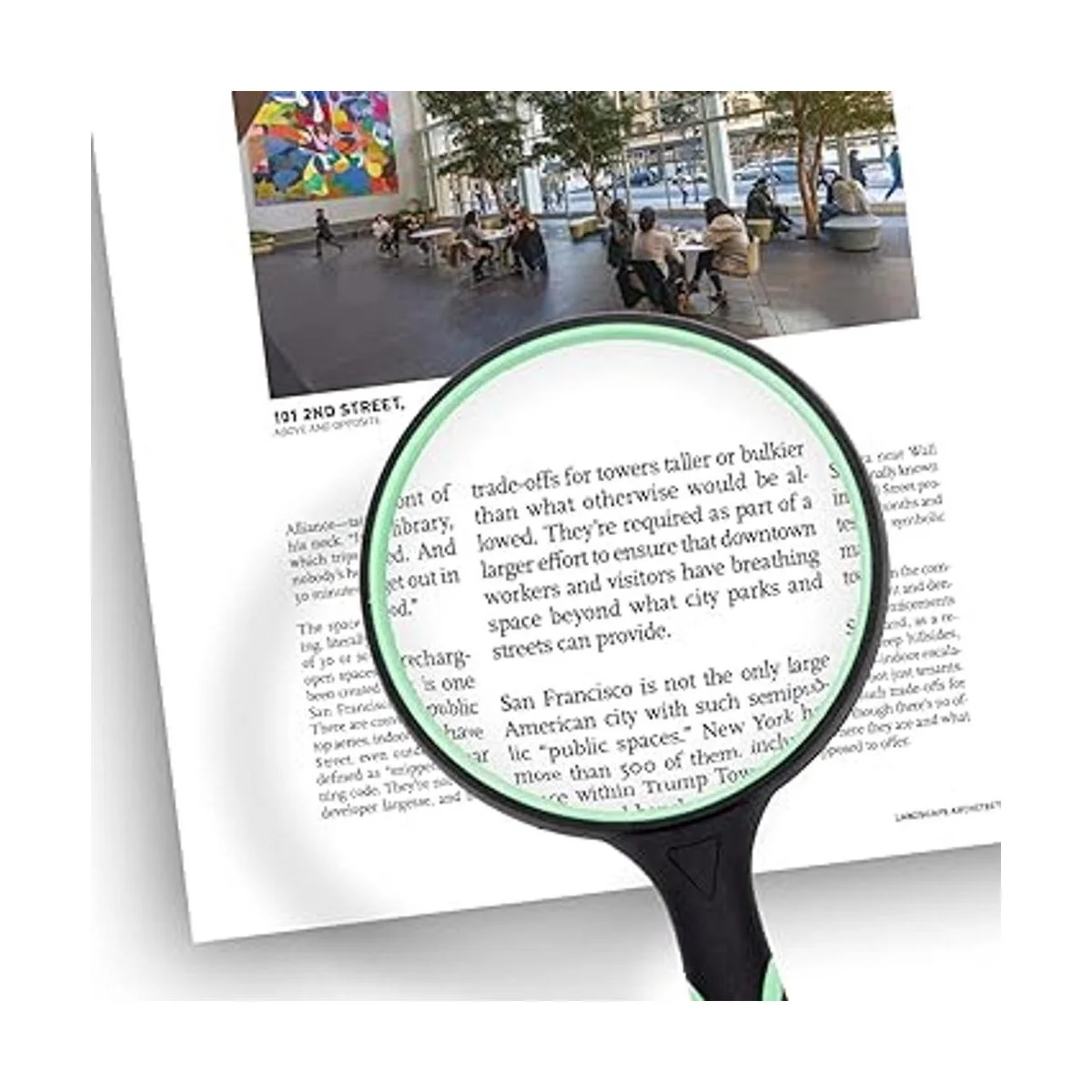 Lupa de gran tamaño de 5 aumentos, de lectura de mano para personas mayores y niños, de 4 pulgadas, lente de aumento de cristal para lectura de libros, periódicos, observación de insectos y aficiones, ciencia en el aula color verde