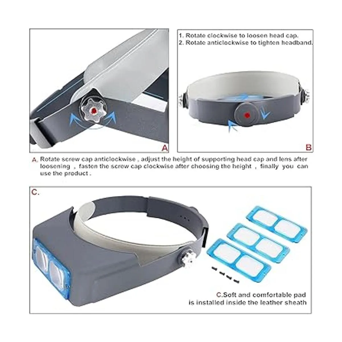 Lupa de lectura con doble lente montada en la cabeza, lupa de lectura, visera de joyería, lupa binocular de vidrio óptico con aumento de lente, 1.5 x 2.5 x 3.5 x