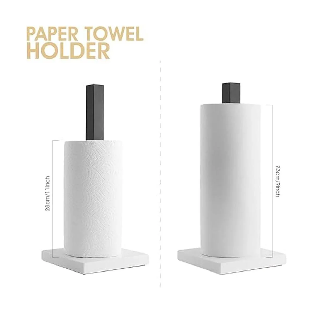Uso y cuidado: este soporte para toallas de papel está hecho de metal y mármol, no utilices un limpiador afilado y rígido para limpiar. Utiliza un paño suave o esponja para limpiar la superficie de los soportes para toallas de papel.