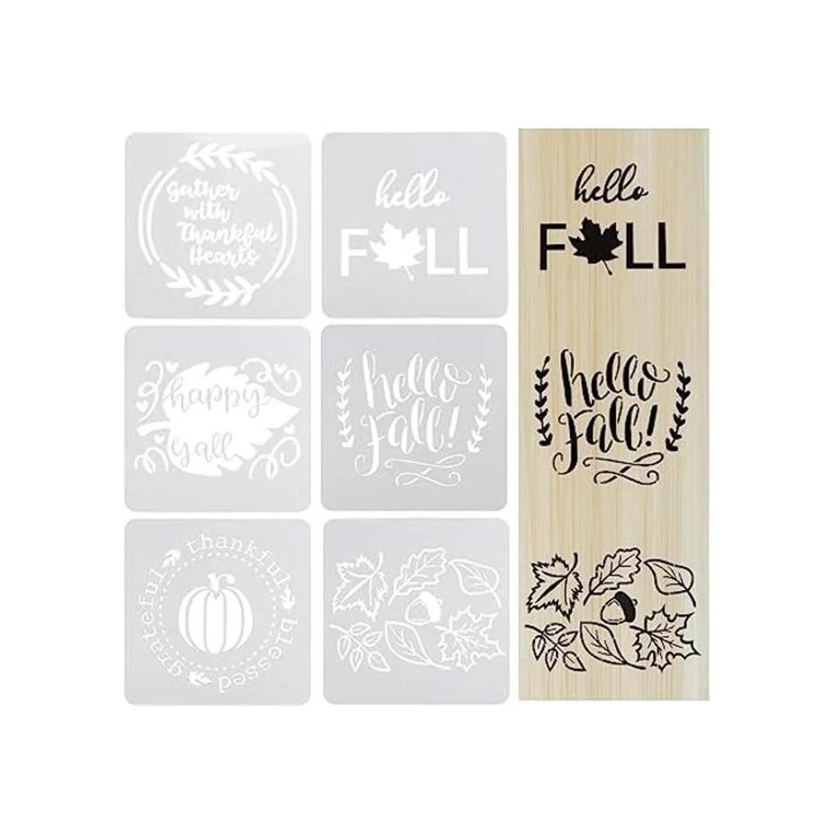 LUTER Plantillas de madera para decoración de casas de campo, 6 unidades, diseño de calabaza y arce, reutilizables, 12.0 x 12.0 in
