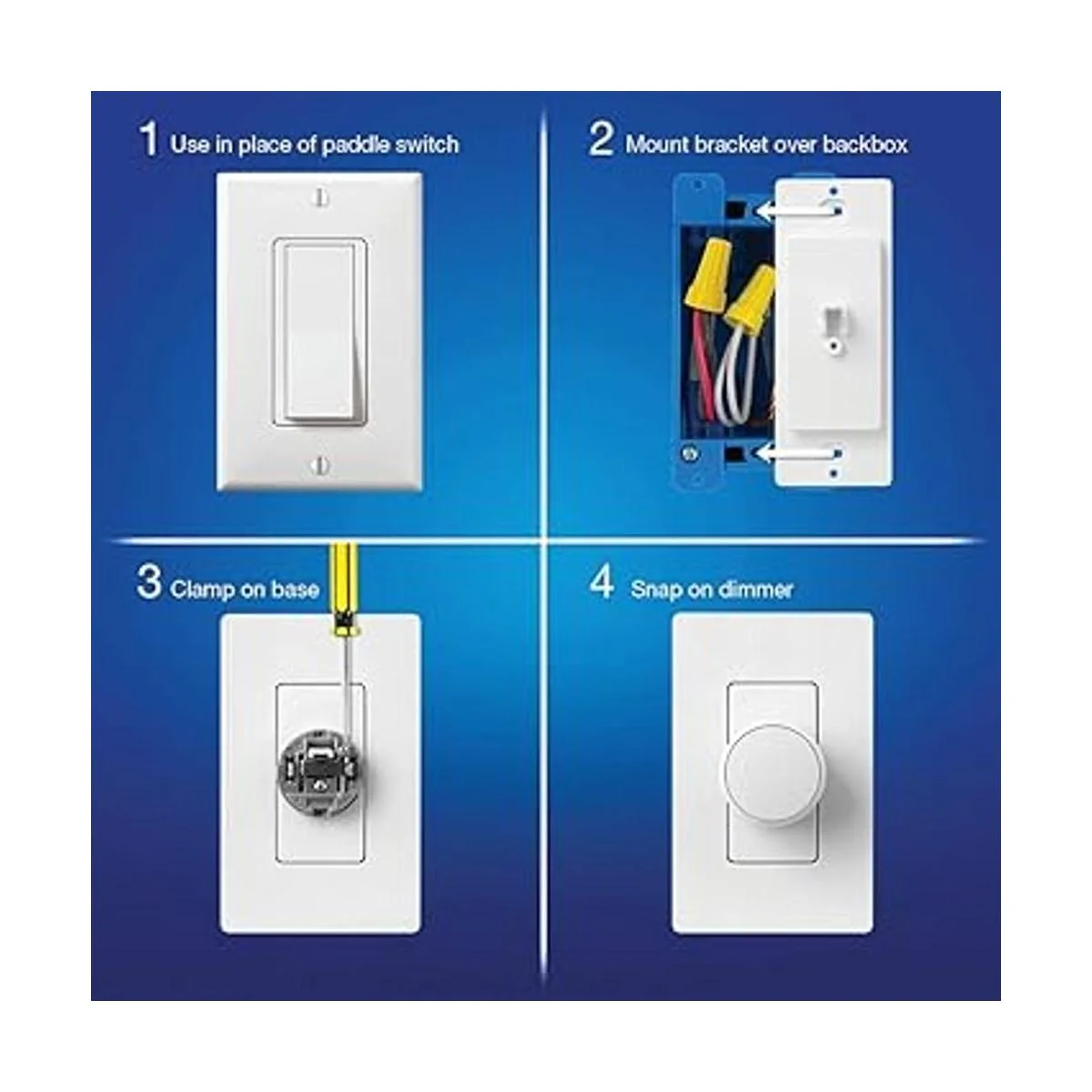 Instalación sencilla: reemplaza el interruptor de paleta existente con soporte de placa de pared; simplemente retira el interruptor de paleta existente, coloca los cables en la caja trasera y monta el soporte de la placa de pared