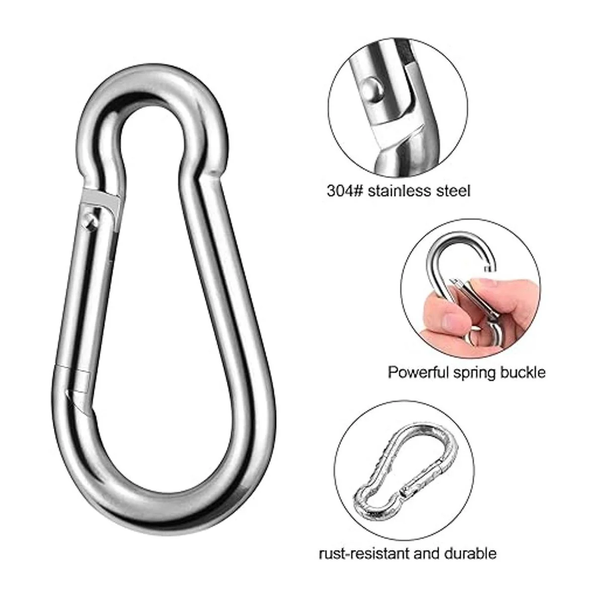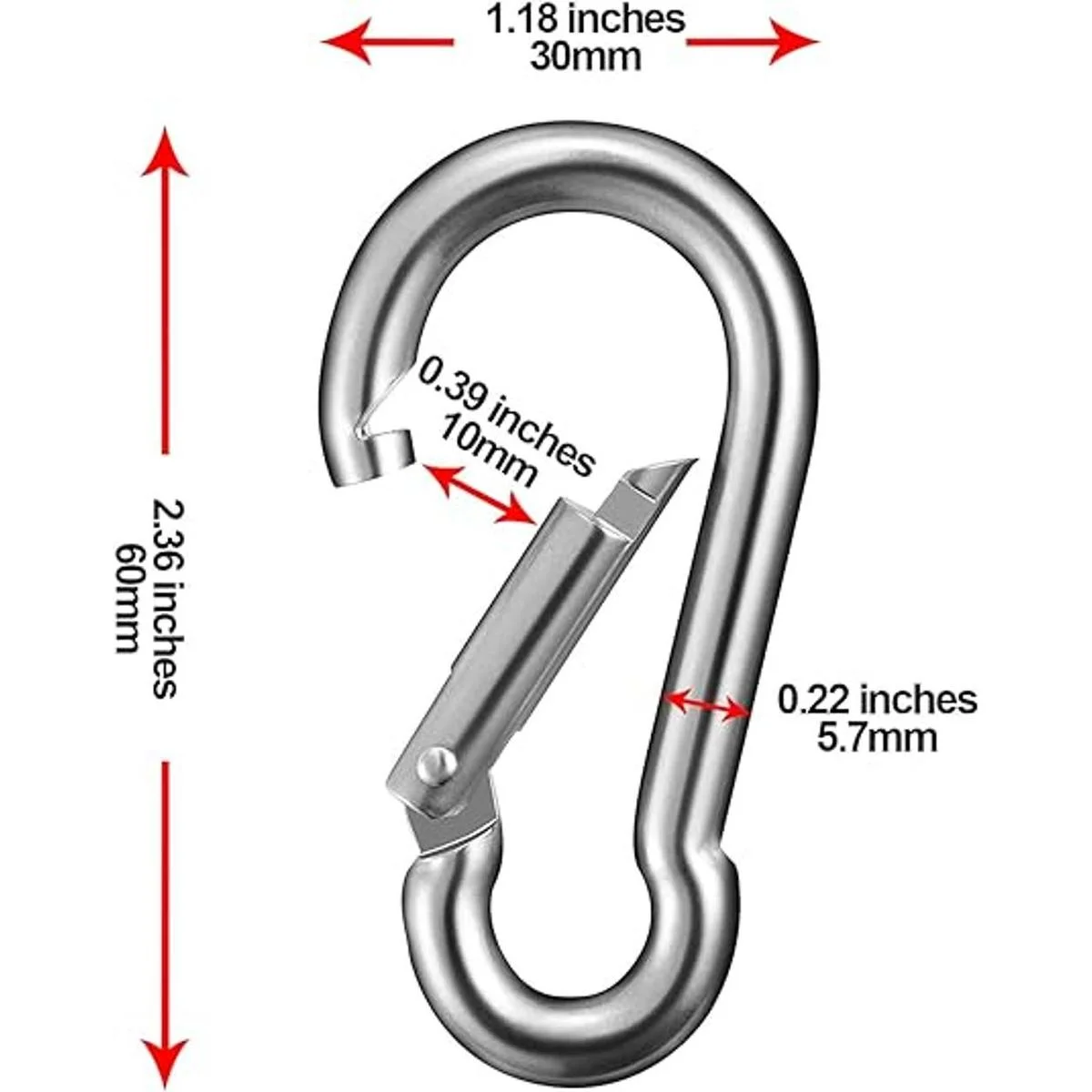 El producto incluye: 6 mosquetones de acero inoxidable M6: 0.236 x 2.362 in