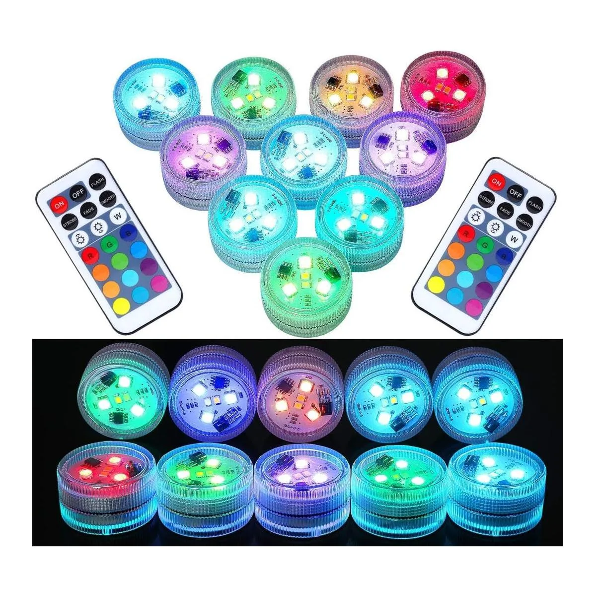 LUXJET 10 mini luces LED sumergibles con control remoto, luces de té pequeñas bajo el agua alimentadas por pilas, luz LED sin llama para fiestas, eventos, florero, pecera, jacuzzi