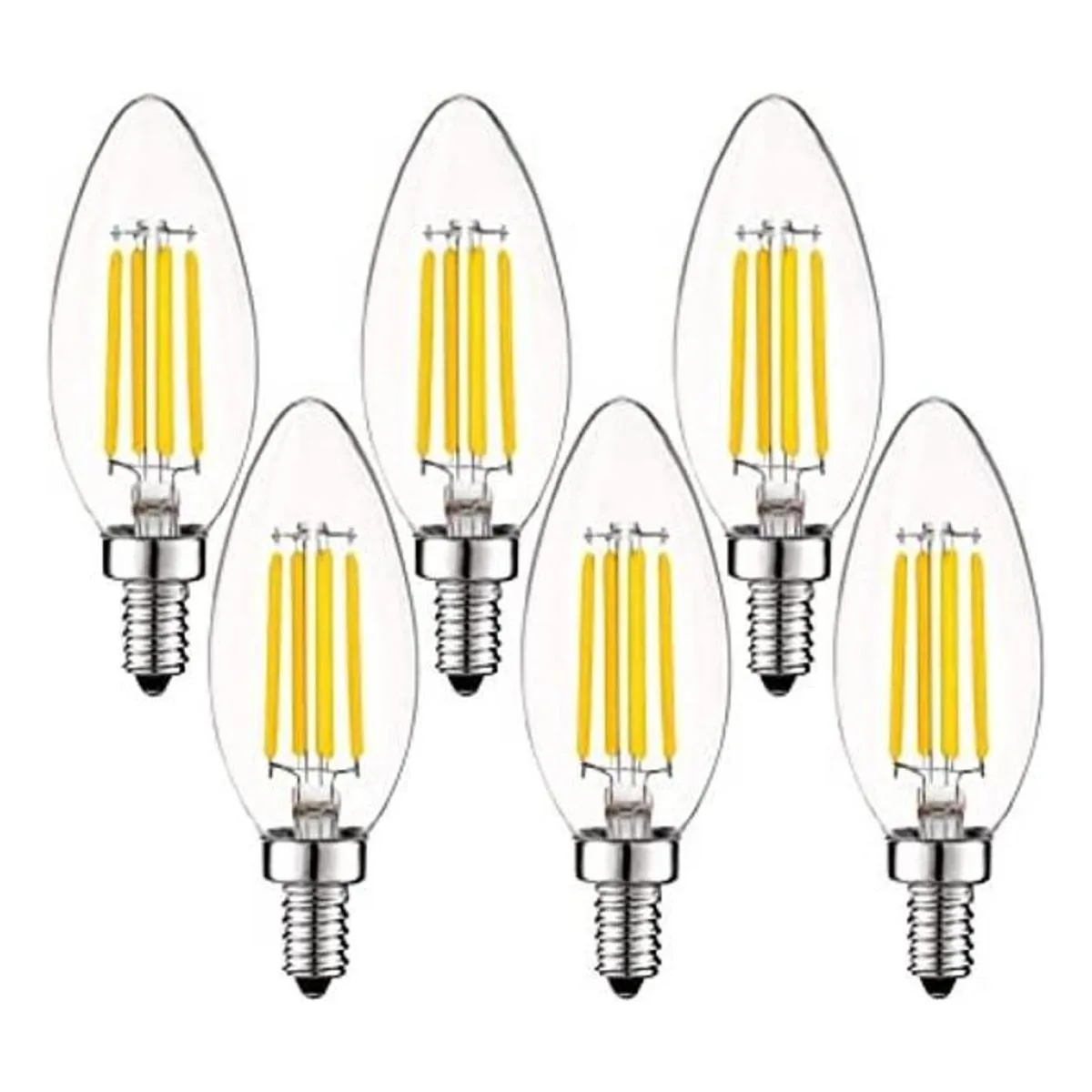 Diseño EDISON: hermosas bombillas de candelabro torpedo con filamentos expuestos que tienen el mismo atractivo que la bombilla tradicional Edison, con el beneficio añadido de un menor uso de energía. Utilízalos con tus lámparas de araña, candelabros, ventiladores de techo, poste de lámpara, linternas, porche, entrada, comedor, baño o cualquier accesorio de iluminación del hogar con un pequeño enchufe de base E12.