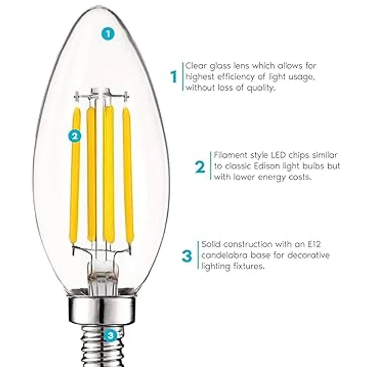 Ahorra energía: reduce tu consumo de electricidad en un 91 cuando reemplazas tus bombillas incandescentes de candelabro de 60 W con una bombilla LED de candelabro de 5 W. Reduce inmediatamente el costo de tu factura de electricidad haciendo la inversión en bombillas LED de bajo consumo.