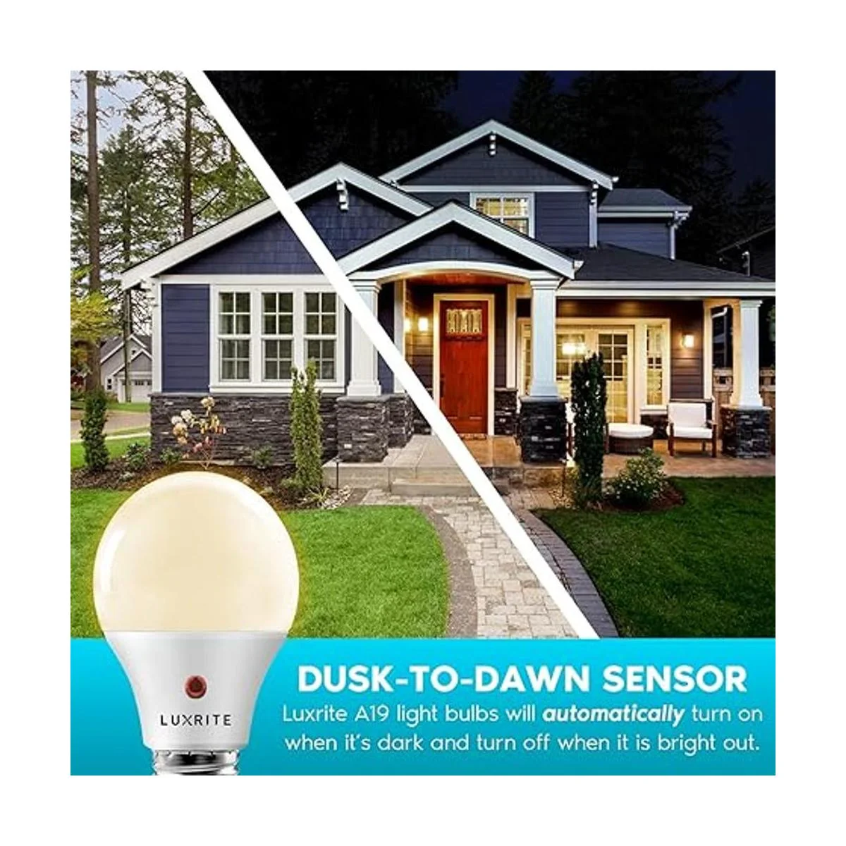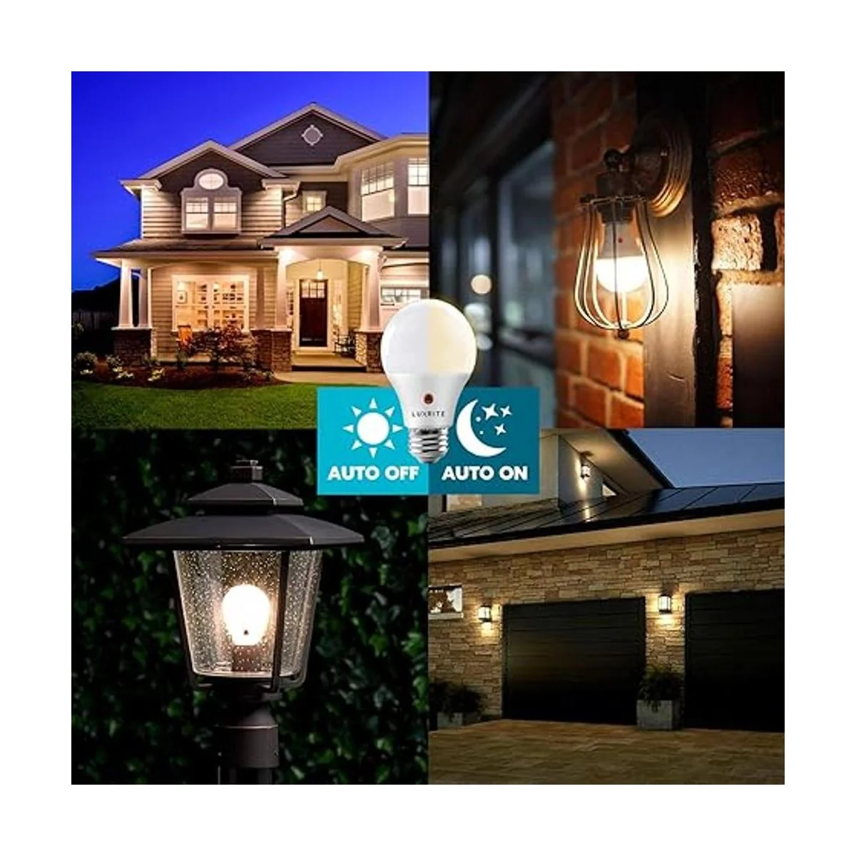 Del anochecer al amanecer: haz que tus bombillas exteriores se enciendan y apaguen automáticamente dependiendo de la hora del día. Estas bombillas del atardecer al amanecer detectan cuando comienza a oscurecerse y se encenderán al instante. Cuando salga el sol, se apagarán y conservarán energía. No se necesita acción manos para controlar tus luces exteriores. Tendrás la comodidad y la seguridad sabiendo que tus luces proporcionan luz brillante incluso cuando no estás en casa.