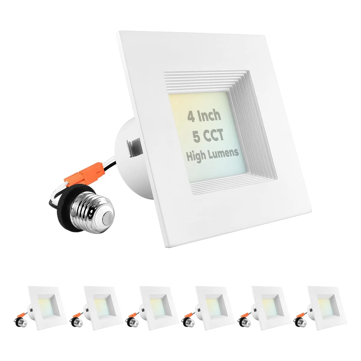 Luxrite Luces empotrables LED cuadradas de 3.9 in, 14 W 75 W, 5 opciones de color 2700 K5000 K, 950 lúmenes, kit de reequipamiento LED regulable, clasificación húmeda, clasificación IC, listado ETL, borde deflector paquete de 6