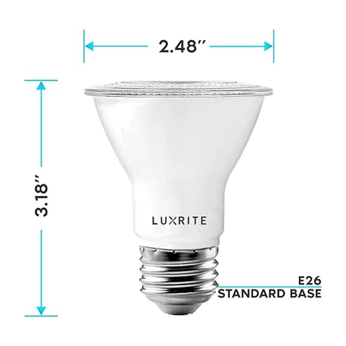 Luxrite Paquete de 4 bombillas LED PAR20, equivalente a 50 W, blanco brillante de 5000 K, foco LED regulable, interior y exterior, 7 W, 500 lúmenes, clasificación húmeda, base estándar E26, certificación UL