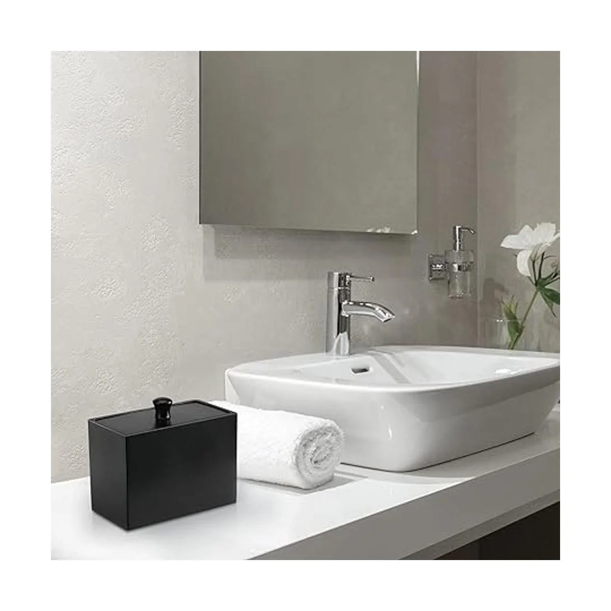 Diseño elegante: el soporte para hisopos cuenta con un diseño moderno y elegante, con mano de obra fina y aspecto clásico que nunca pasa de moda, perfecto para tu baño, sala de estar, dormitorio y oficina, mantiene tu habitación elegante. Puede almacenar algodón redondo, brochas de maquillaje, hisopos de algodón, bolas de algodón, almohadillas de maquillaje y otros accesorios de baño en este recipiente transparente, hace que tu baño esté limpio y organizado.