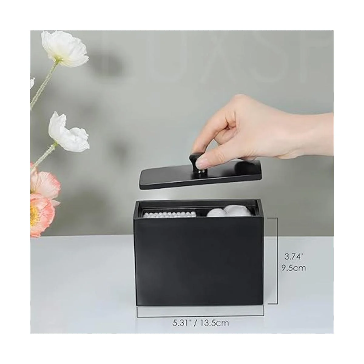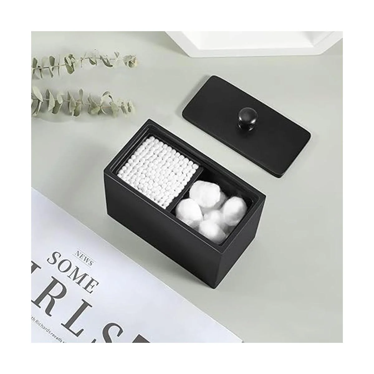 Luxspire Soporte para hisopos de algodón, recipiente de bolas de algodón de resina con tapa, dispensador de 2 compartimentos, caja de almacenamiento de cosméticos, contenedores organizadores de encimera para almohadillas de algodón, redondas, color negro mate